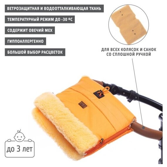 | Отзыв: | Покупала в комплекте с конвертом в одном цвете, просто крепится к коляске, за счет смеси натуральной и искусственной шерсти, не копит внутри влагу и удерживает тепло. Внутри достаточно места если даже надеть сверху перчатки или варежки, верхняя ткань практичная, отталкивает капли воды. Своих денег стоит, особенно если сильные морозы. |