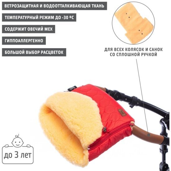 | Плюсы: | Классное качество материалов, ручкам внутри комфортно, не холодно, но и не преют. Легко и надежно фиксируется на коляске. |