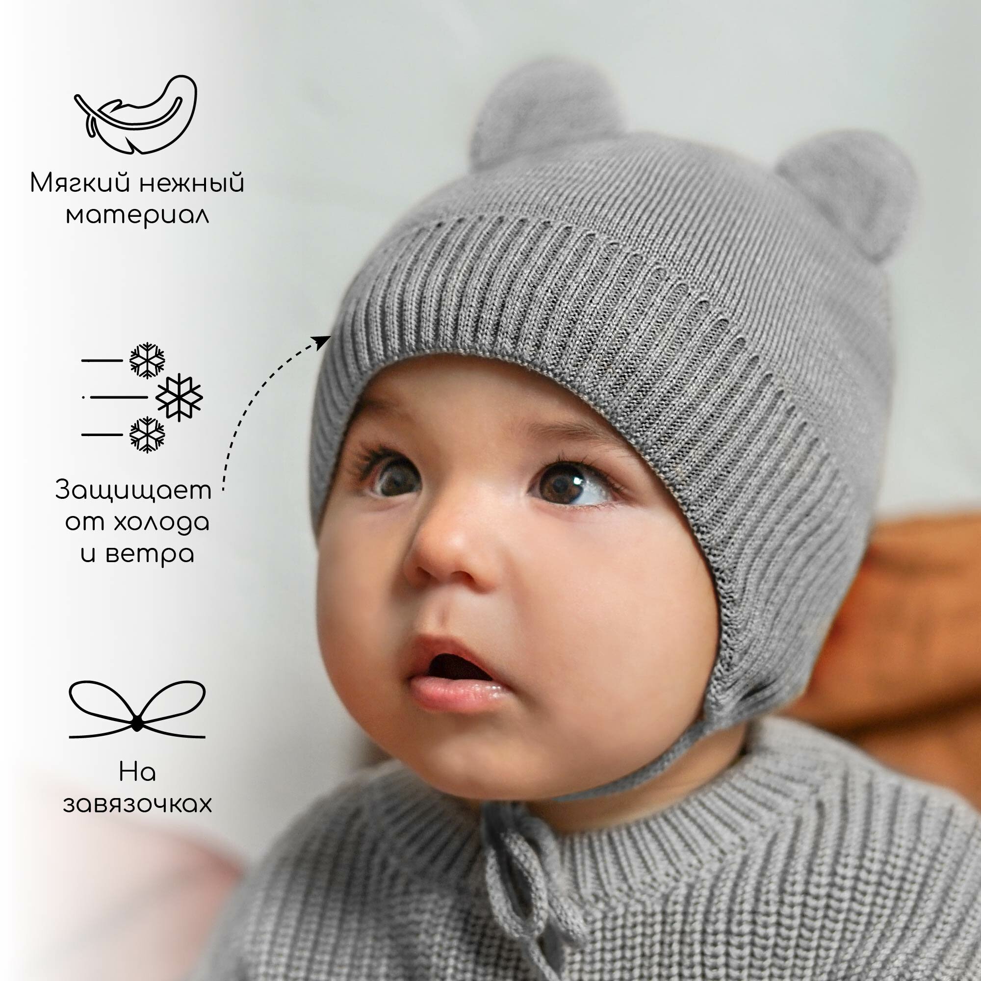 СохранитьШапка-ушанка Amarobaby Pure Love BEAR WINTER для детей, размер 38-40, серая интересное: