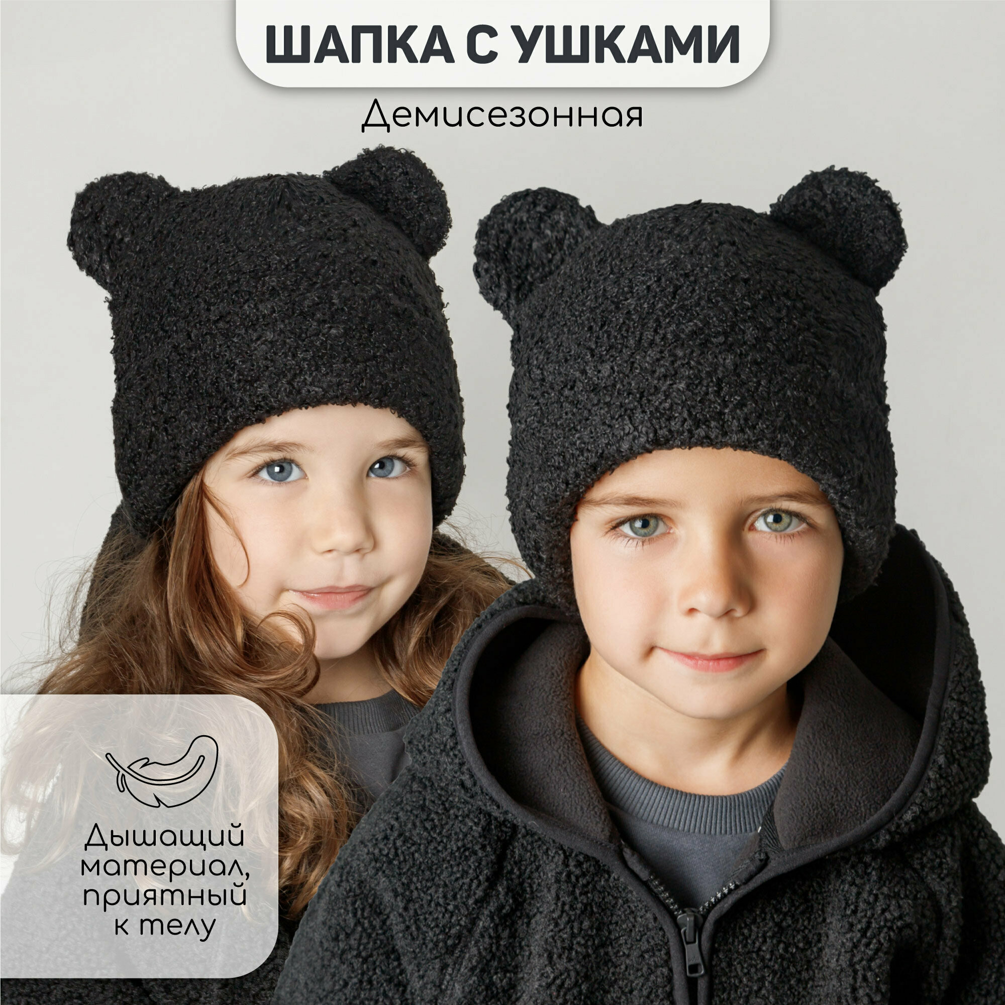 Шапка-бини Amarobaby Plush для детей, размер 50, черный