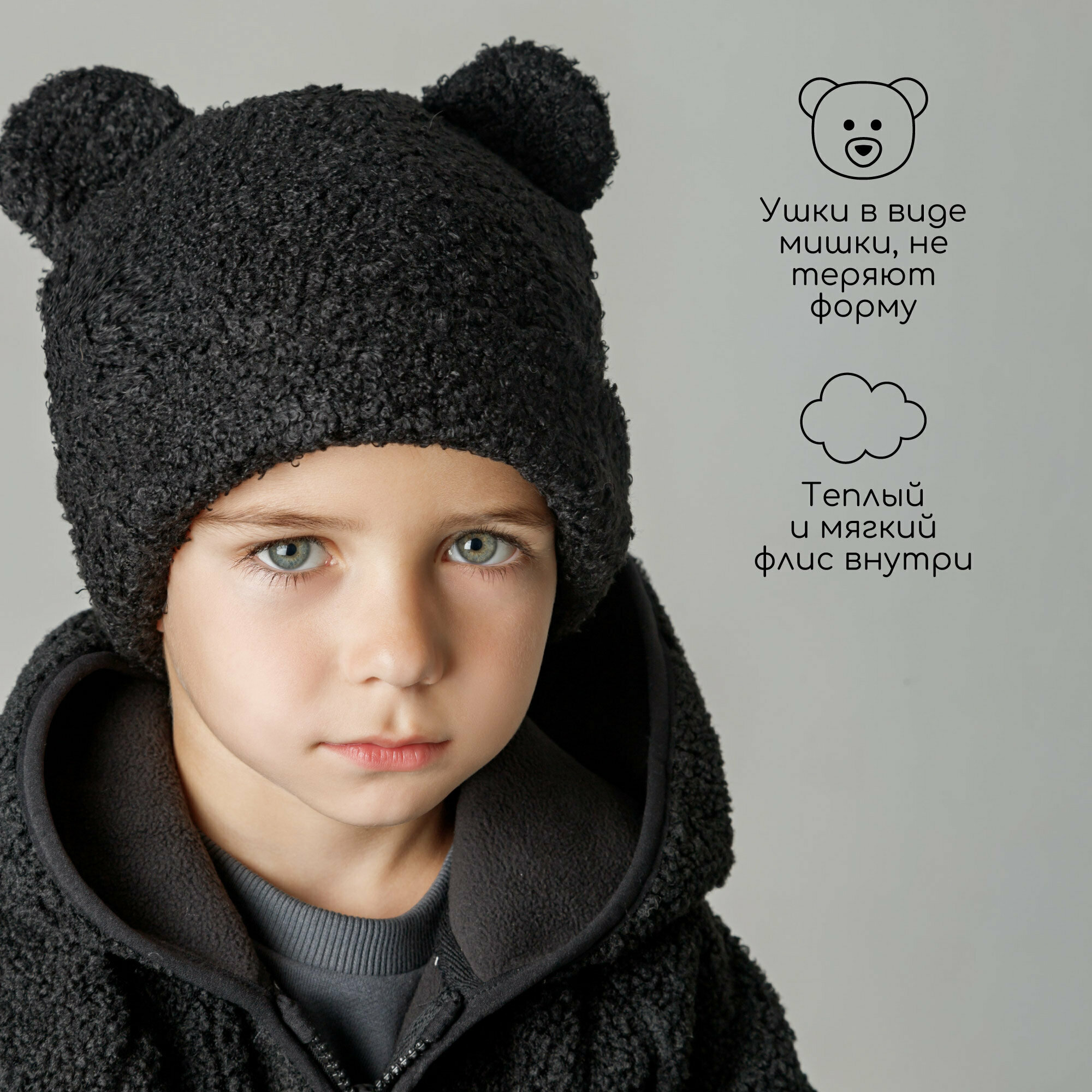 Шапка-бини Amarobaby Plush для детей, размер 50, черный