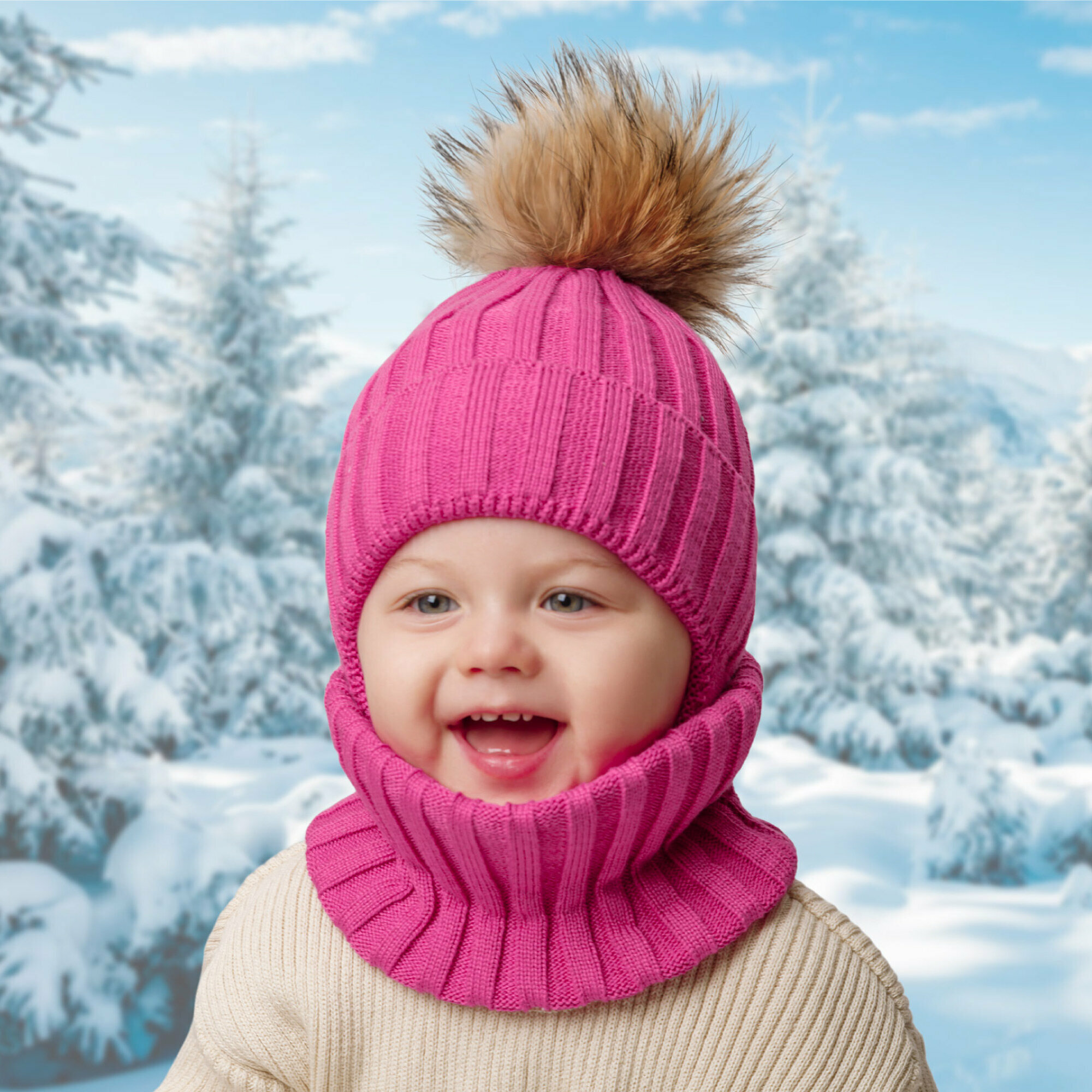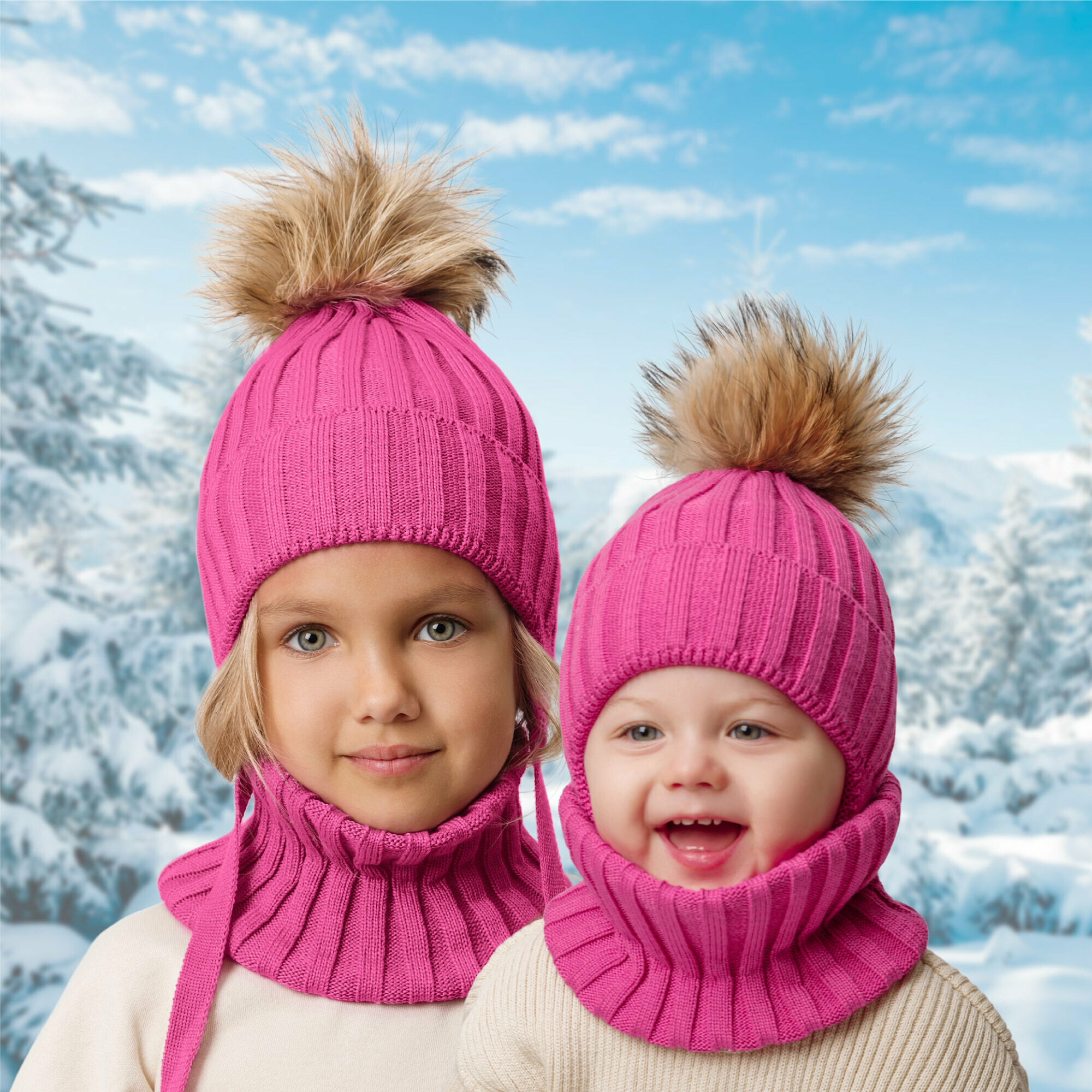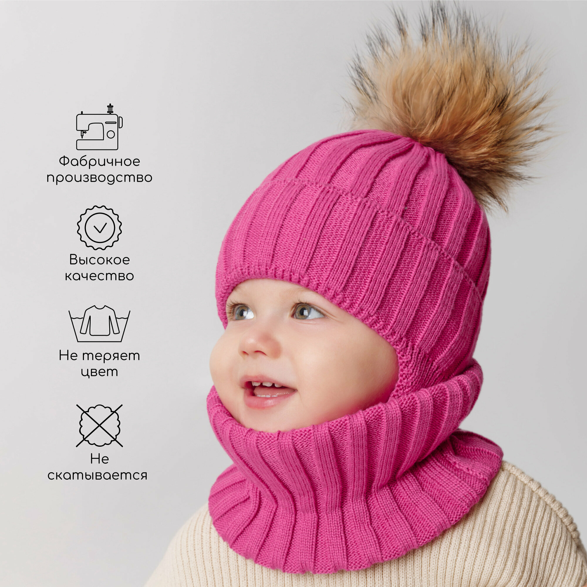 Купить Комплект с головным убором Amarobaby Pure Love Snow для девочек, размер 52-54, фуксия