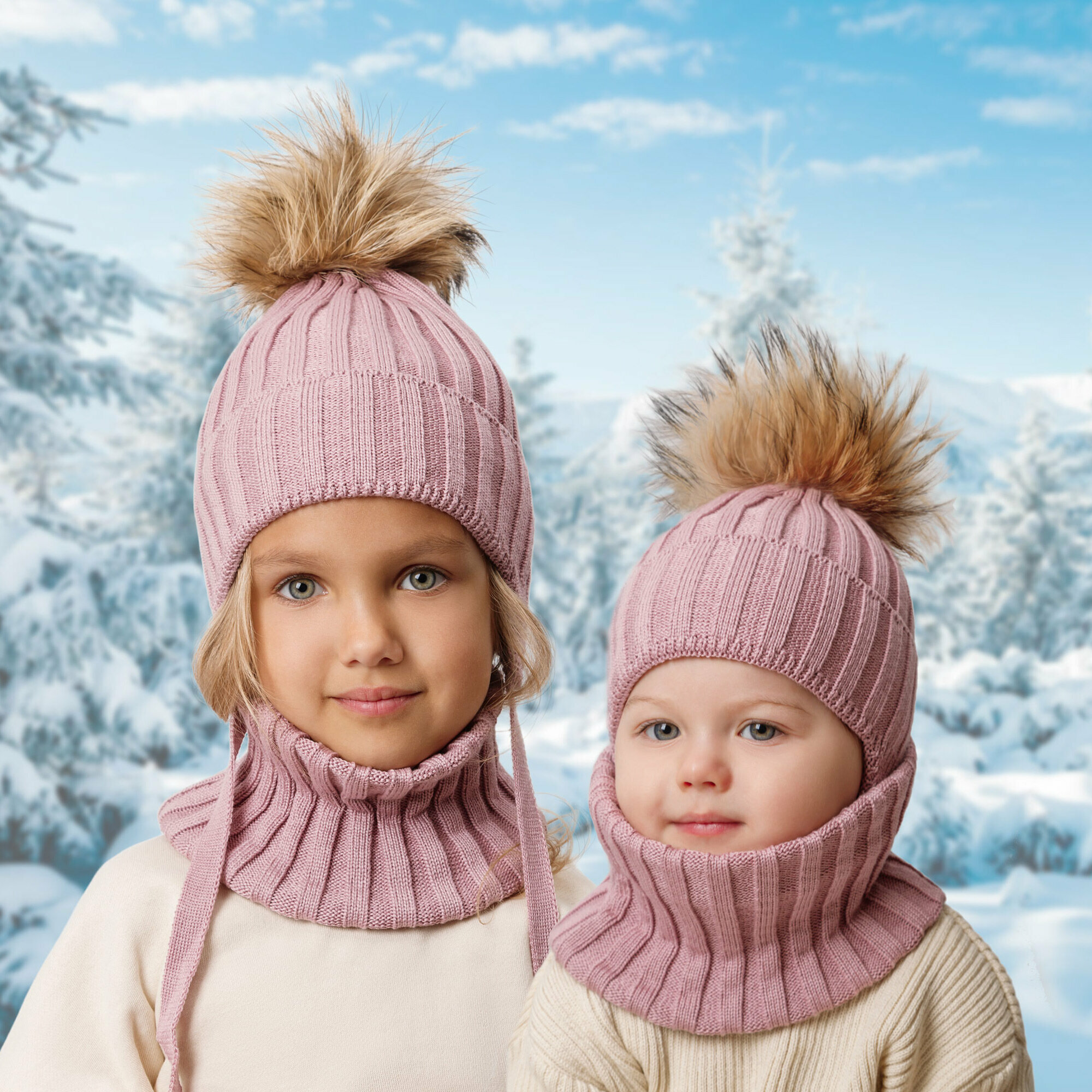 Купить Комплект с головным убором Amarobaby Pure Love Snow для девочек, размер 48-50, пудровый
