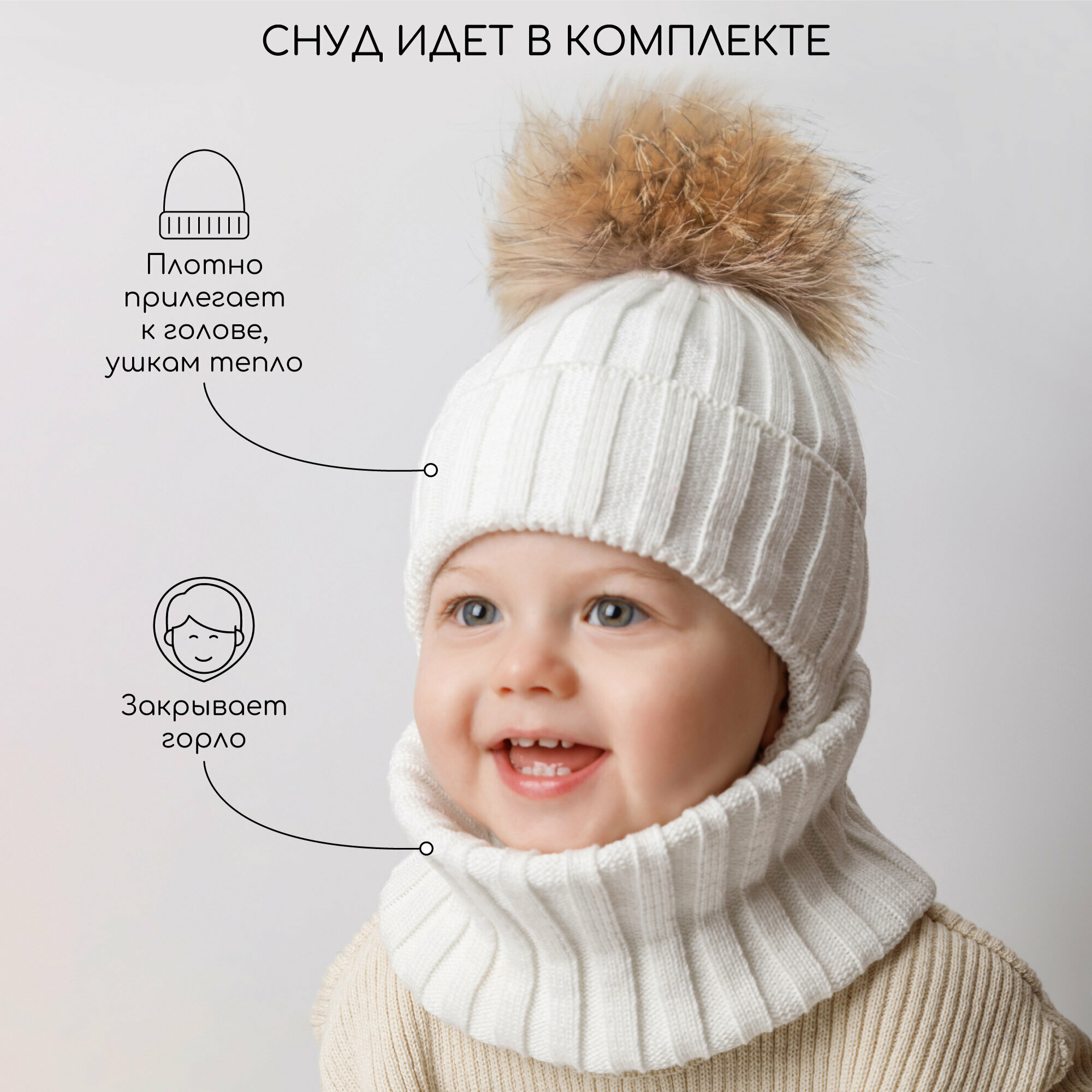Комплект с головным убором Amarobaby Pure Love Snow для детей, размер 50-52, молочный