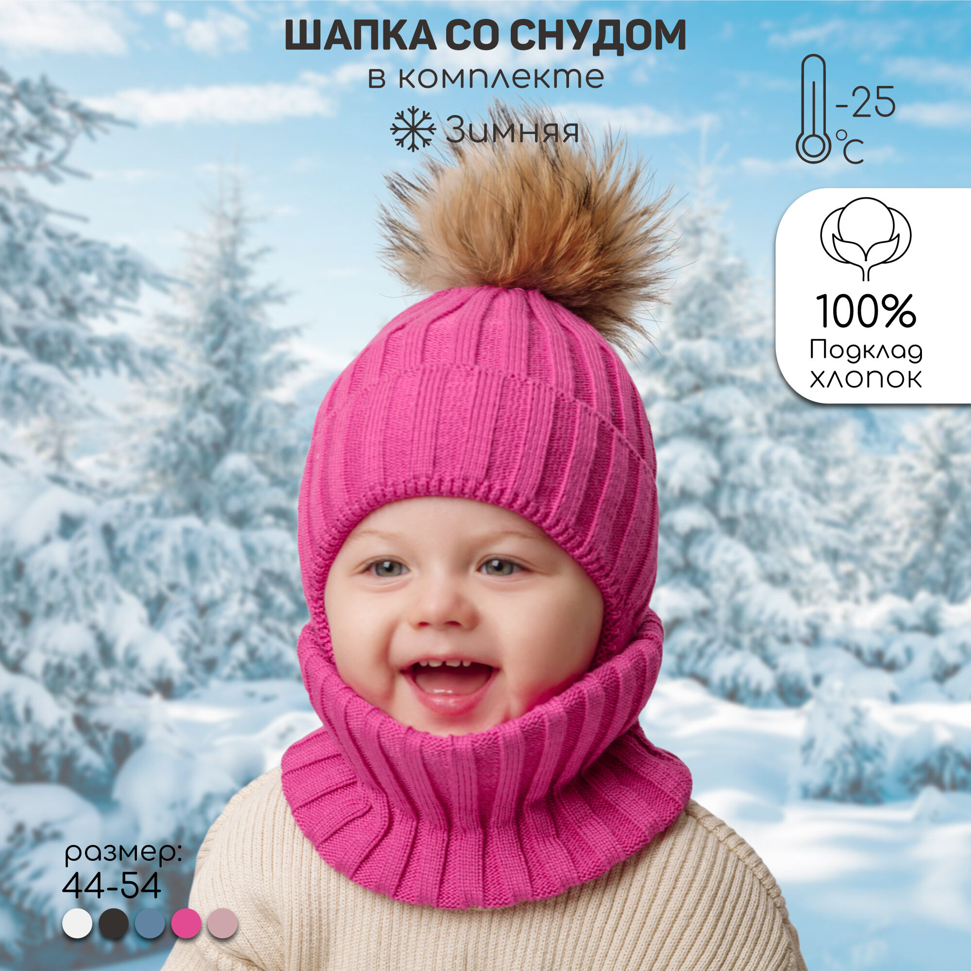 СохранитьКомплект с головным убором Amarobaby Pure Love Snow для девочек, размер 44-46, фуксия интересное: