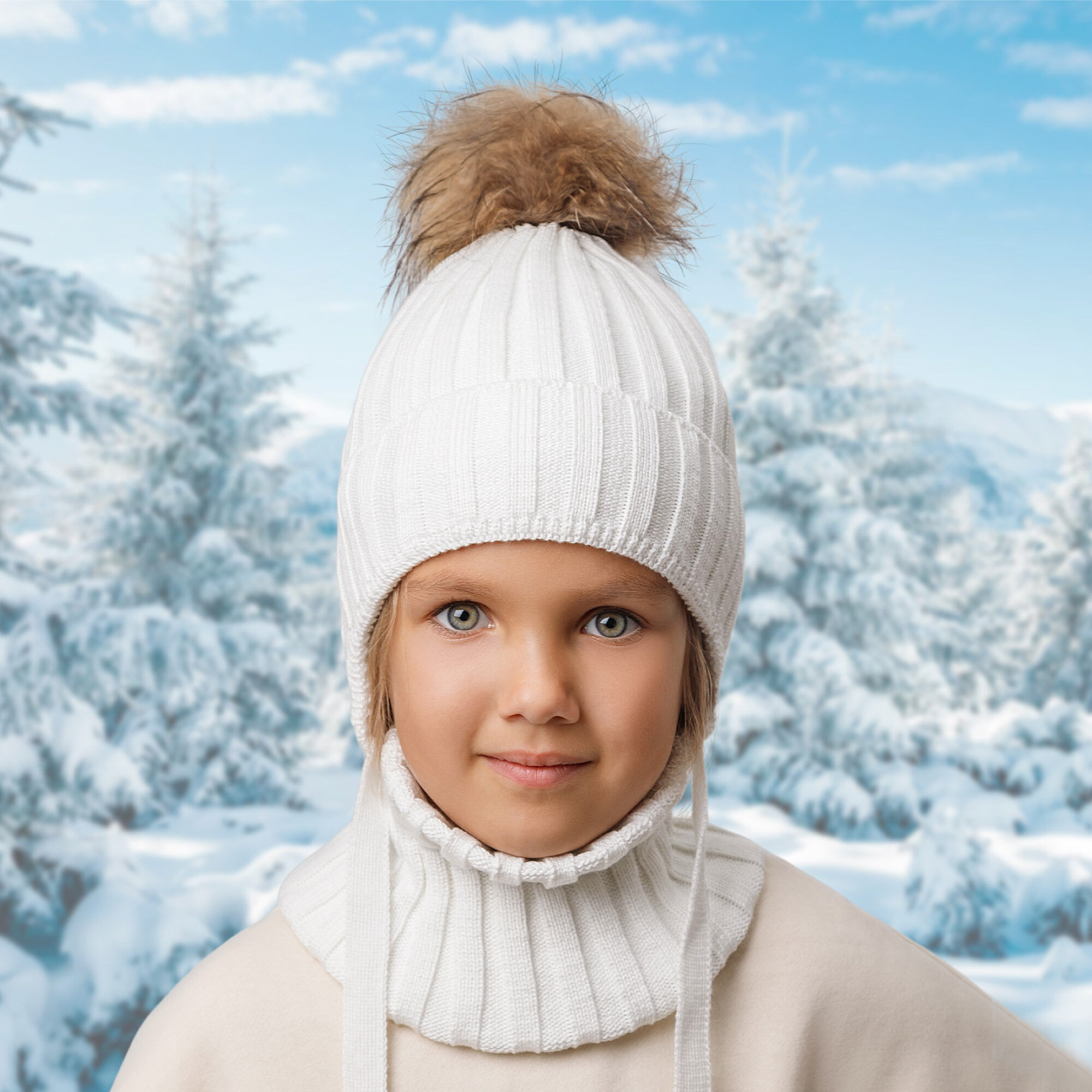 Комплект с головным убором Amarobaby Pure Love Snow для детей, размер 52-54, молочный
