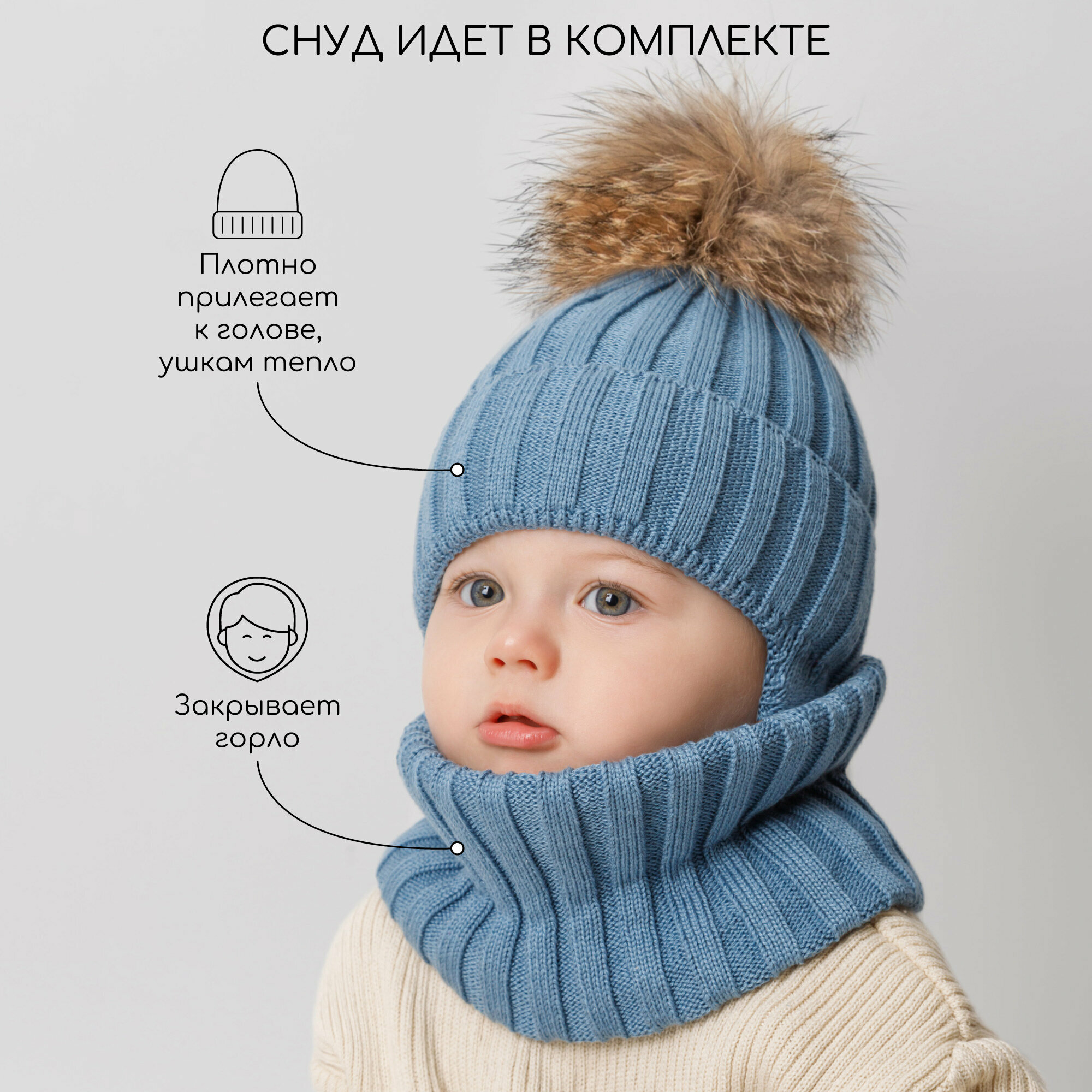 Комплект с головным убором Amarobaby Pure Love Snow для детей, размер 46-48, голубой