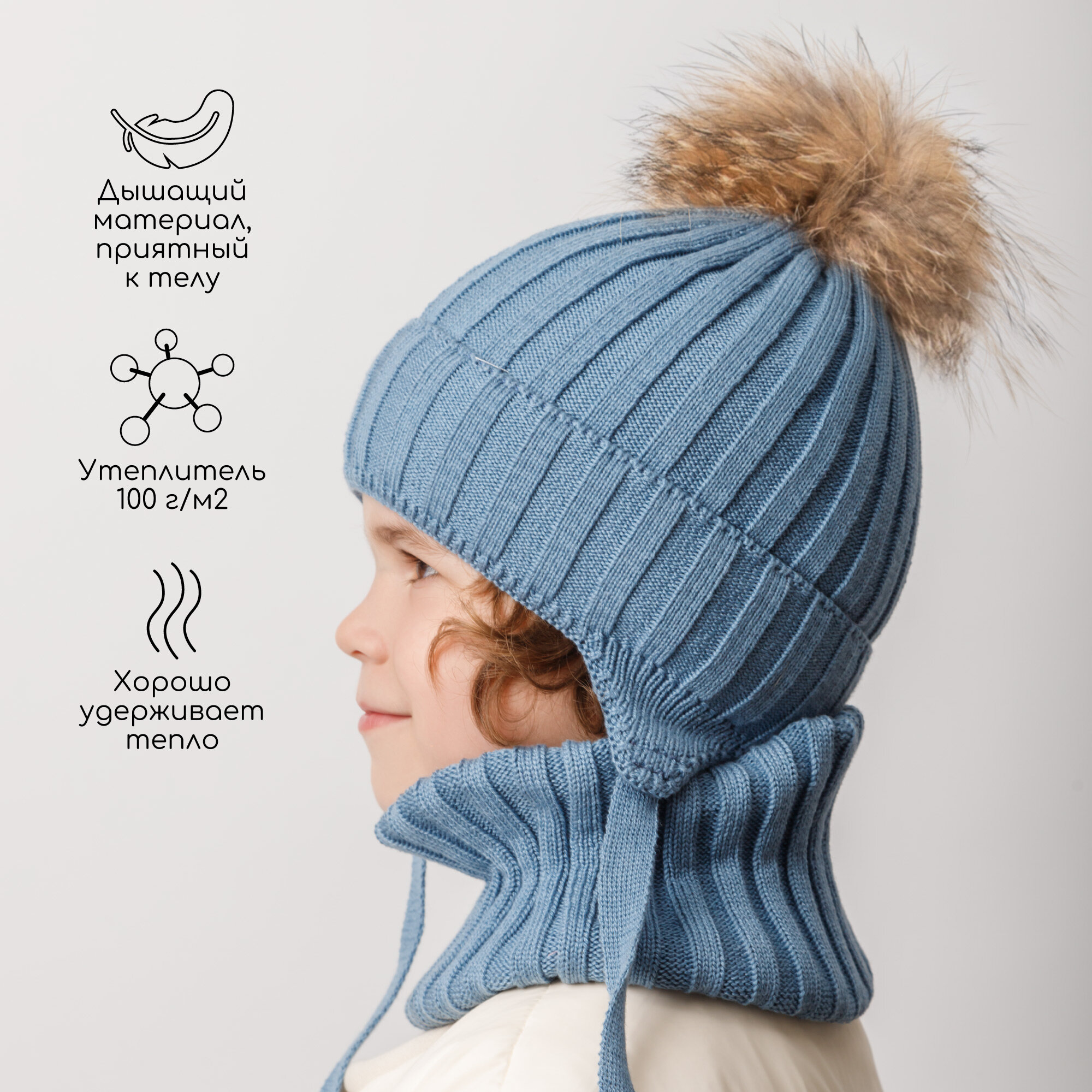 Комплект с головным убором Amarobaby Pure Love Snow для детей, размер 54-56, голубой