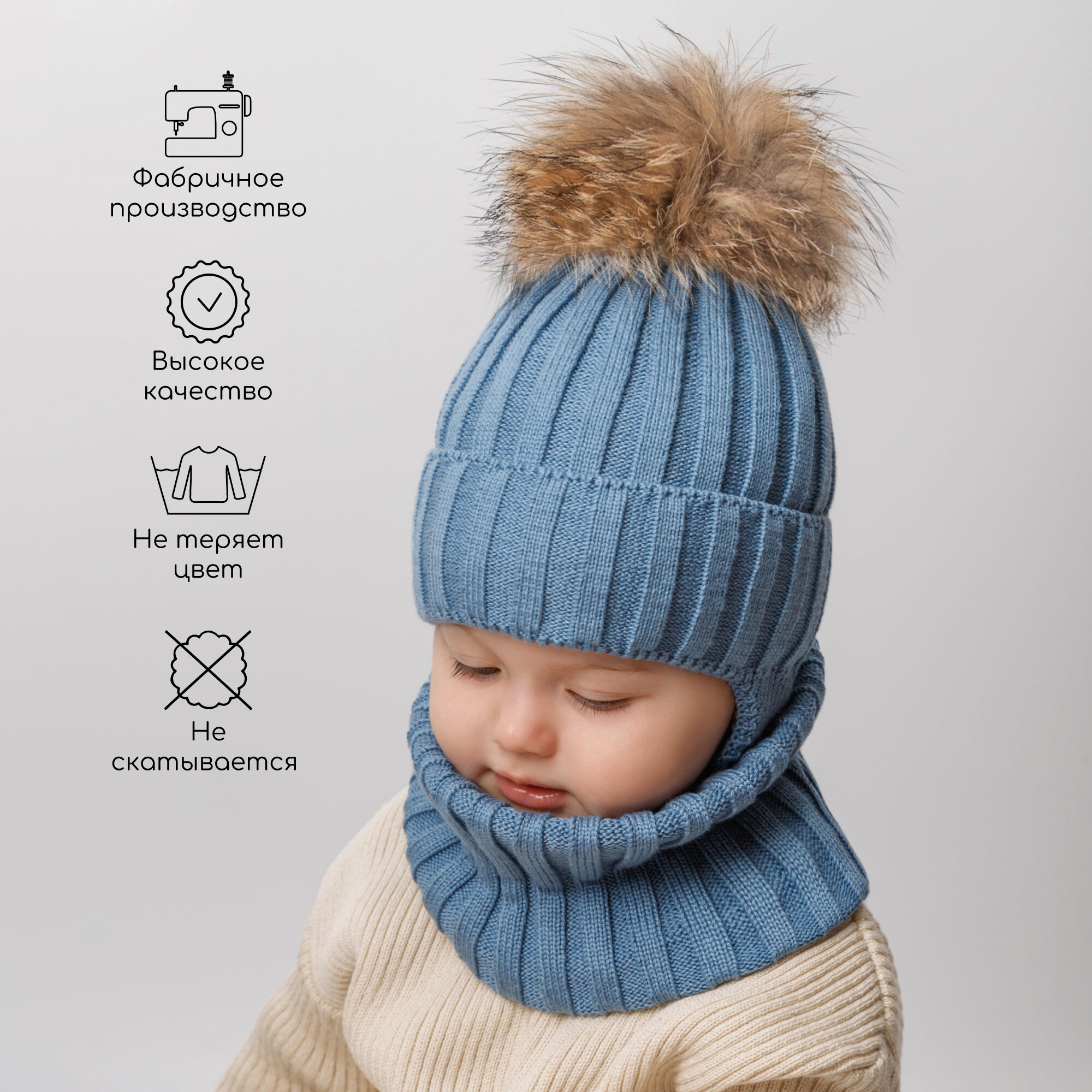 Комплект с головным убором Amarobaby Pure Love Snow для детей, размер 46-48, голубой