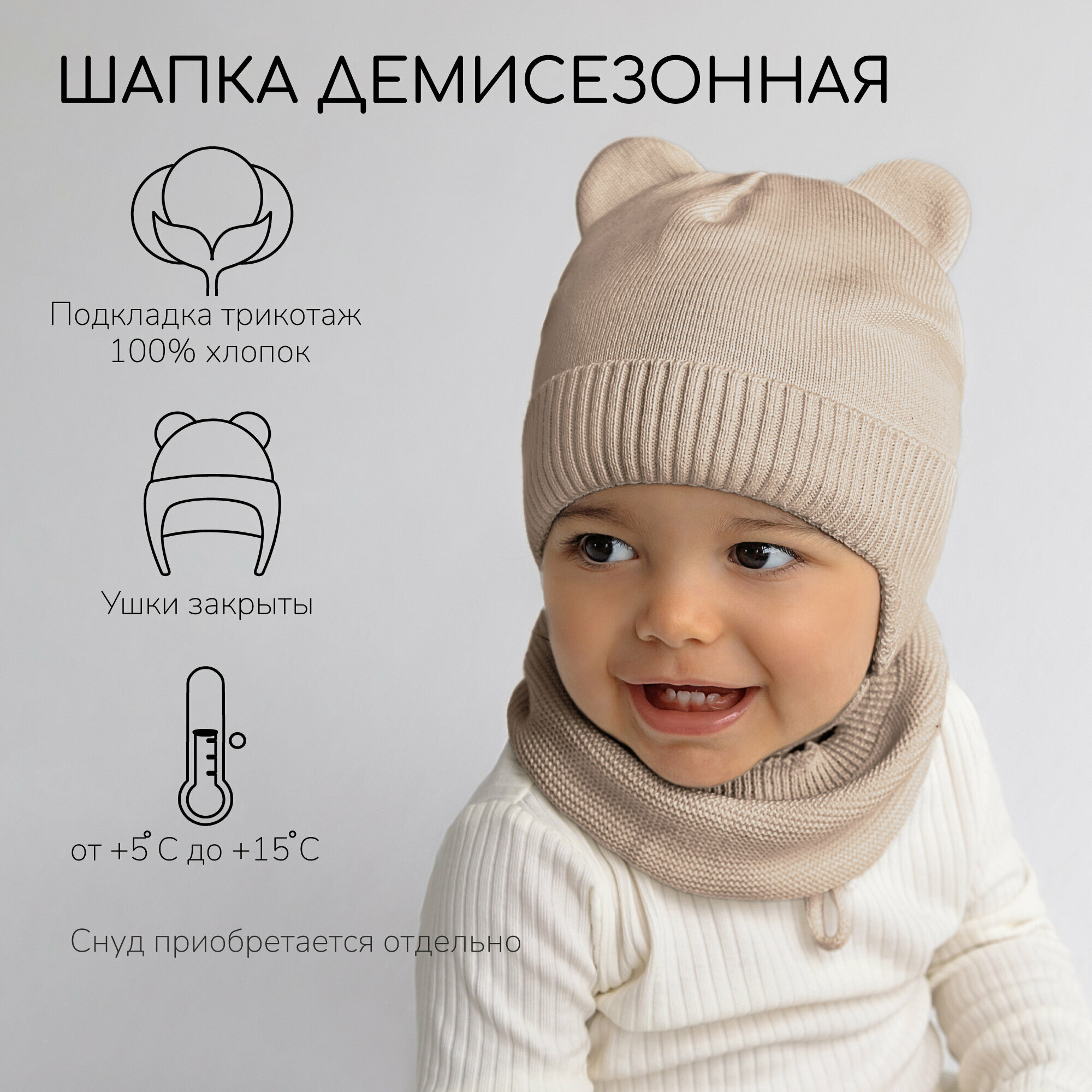 Шапка-ушанка Amarobaby Pure Love BEAR для детей, размер 40, песочный интересное: