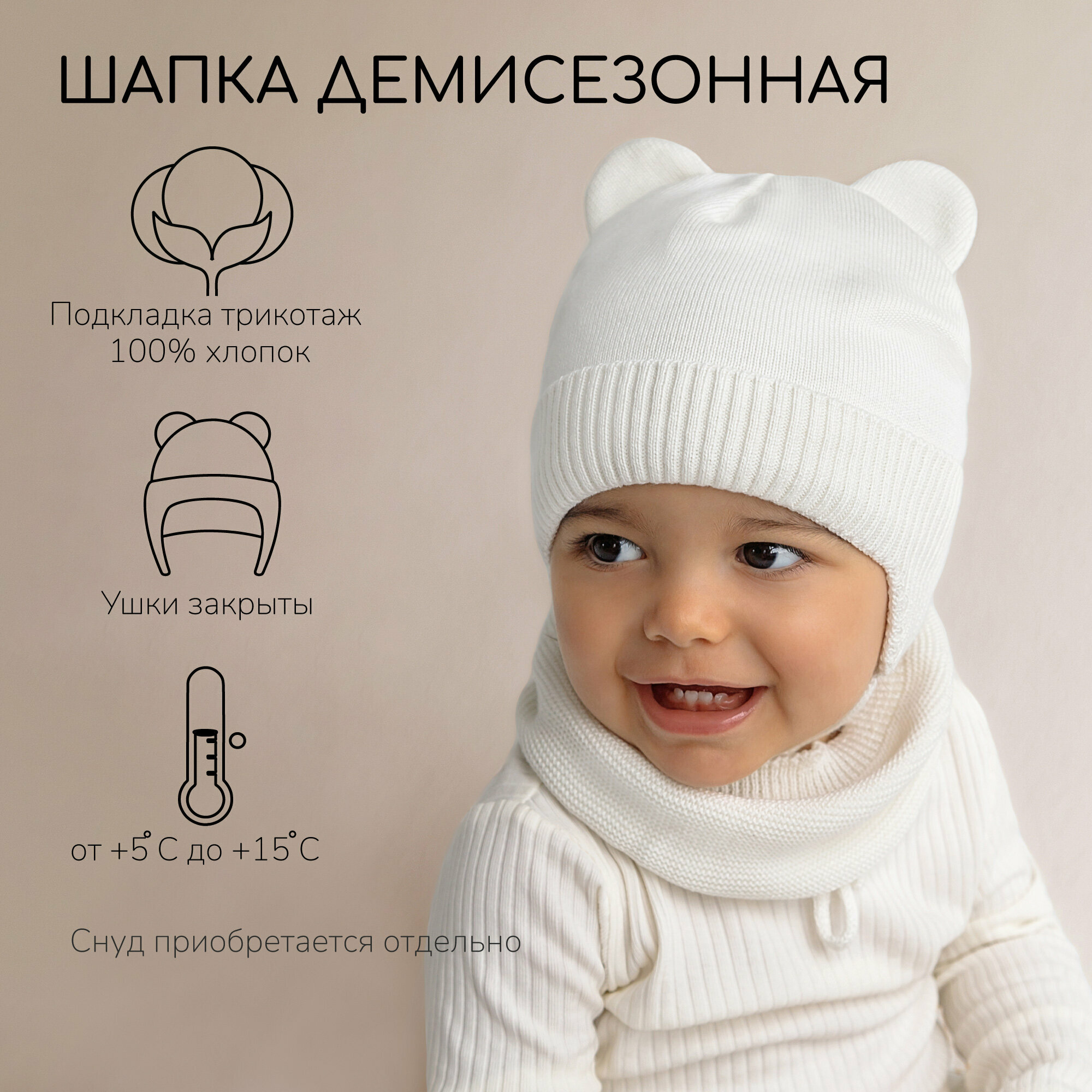 Шапка-ушанка Amarobaby Pure Love BEAR для детей, размер 42, milky интересное: