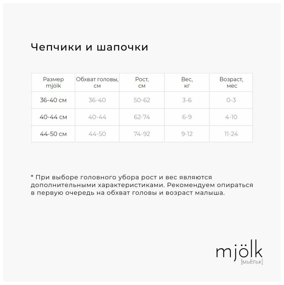 Чепчик Mjolk для детей, размер 36-40, Magic Mint