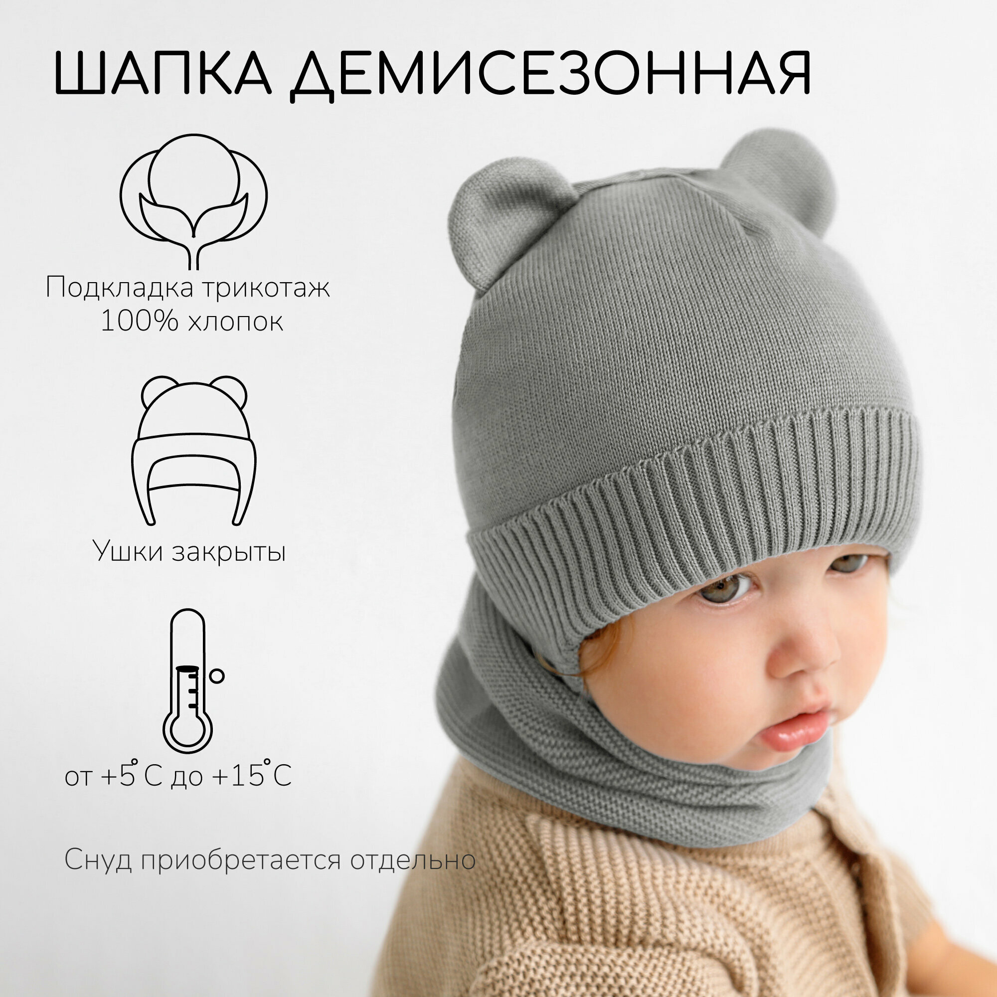 Купить Шапка-ушанка Amarobaby Pure Love BEAR для детей, размер 46, gray