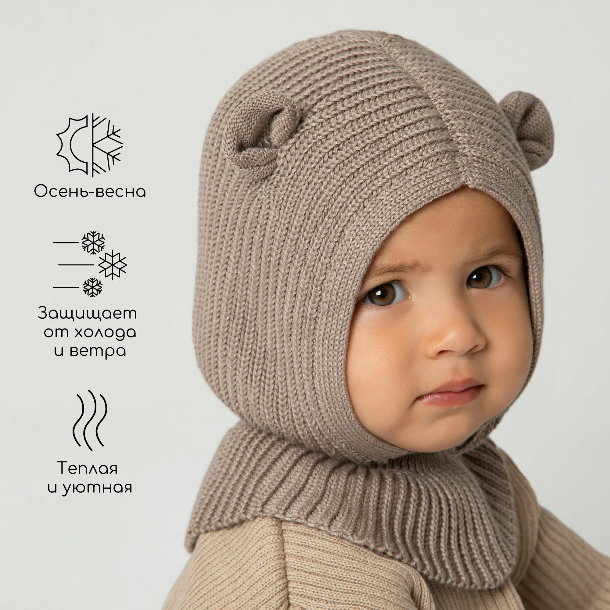Балаклава Amarobaby Pure Love Snug для детей, размер 46-48, молочный