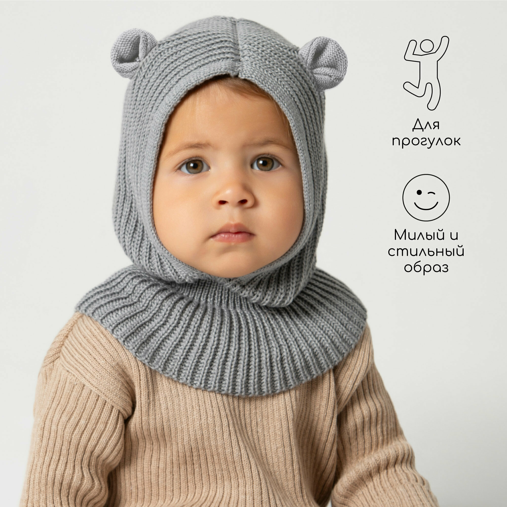 Балаклава Amarobaby Pure Love Snug для детей, размер 46-48, серый