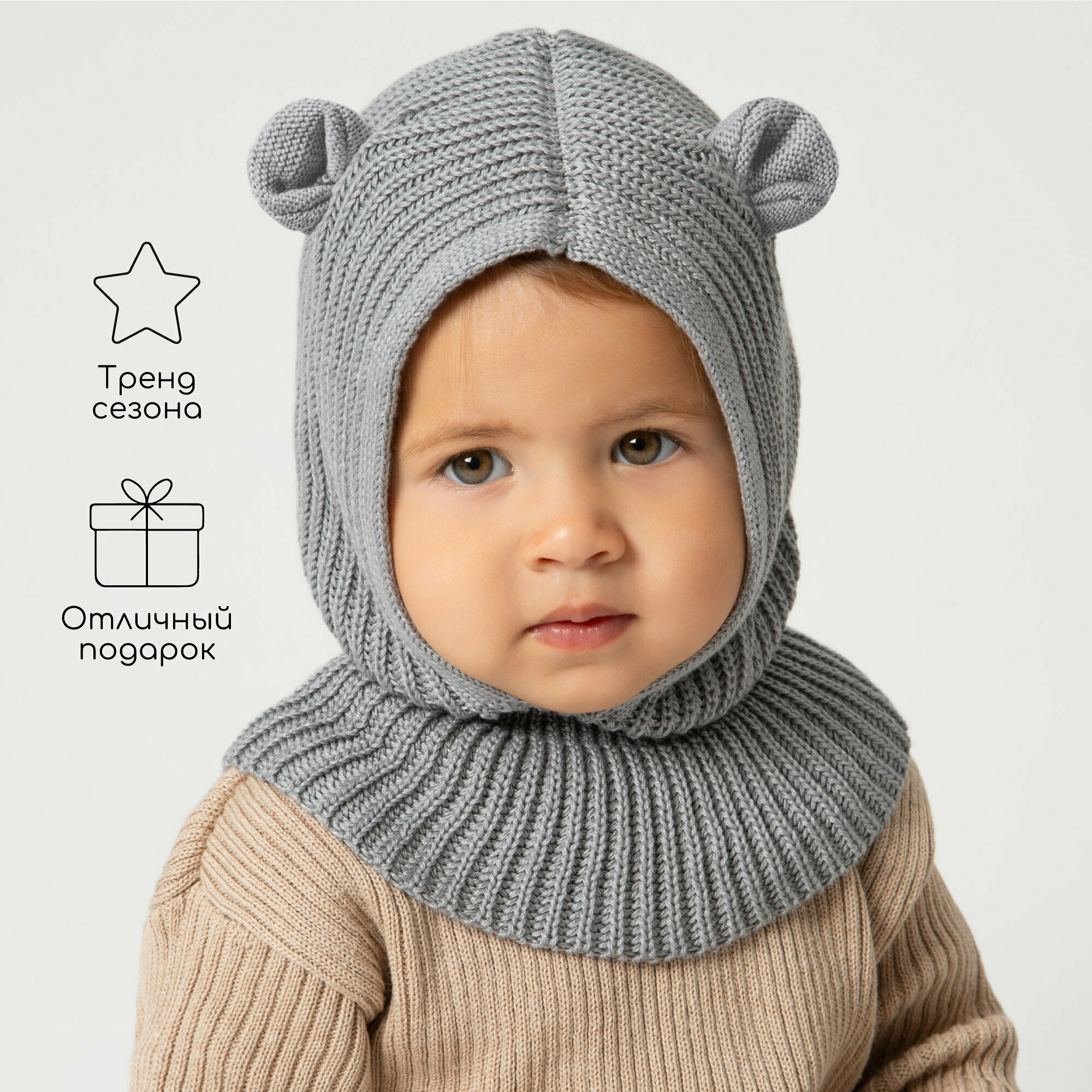 Балаклава Amarobaby Pure Love Snug для детей, размер 48-50, серый