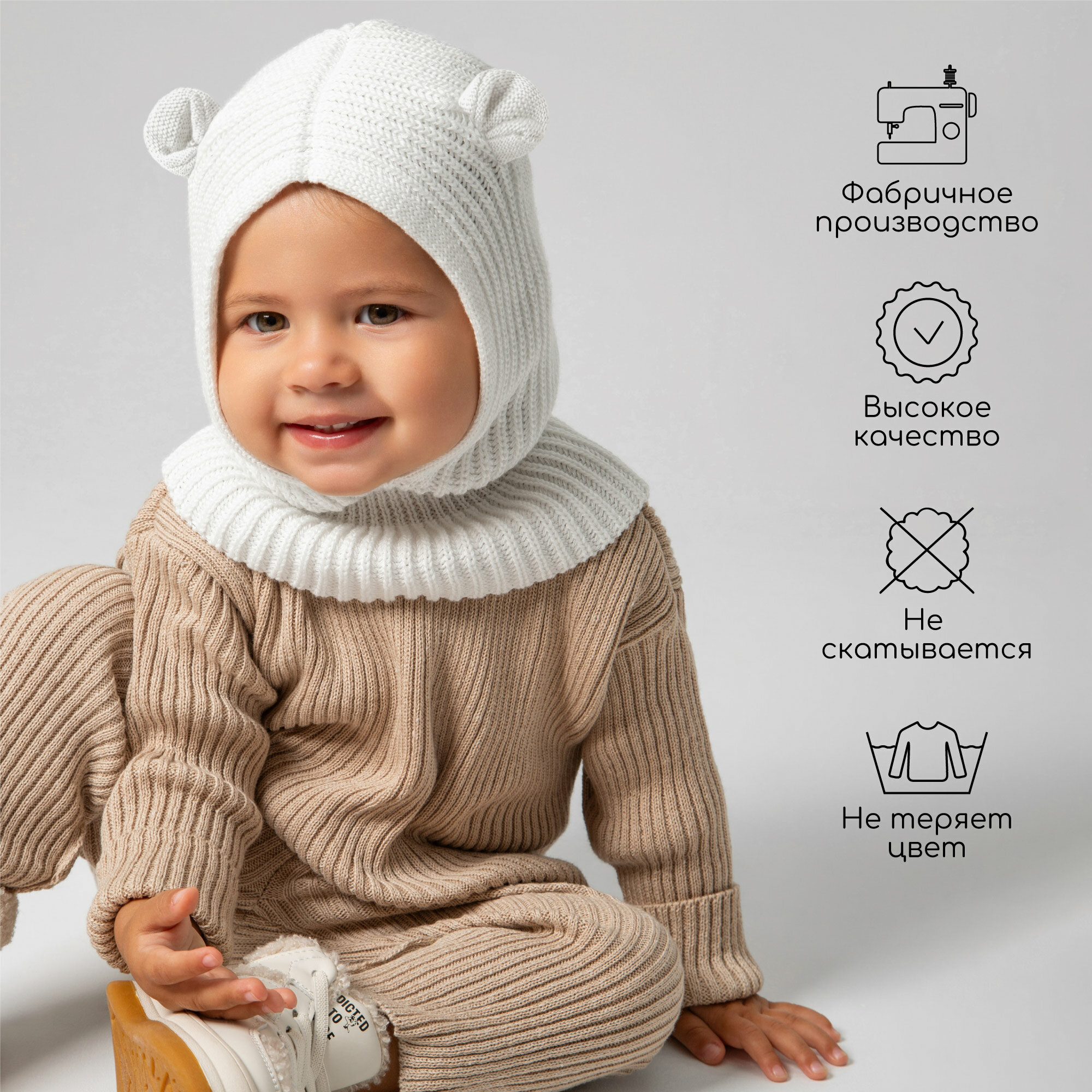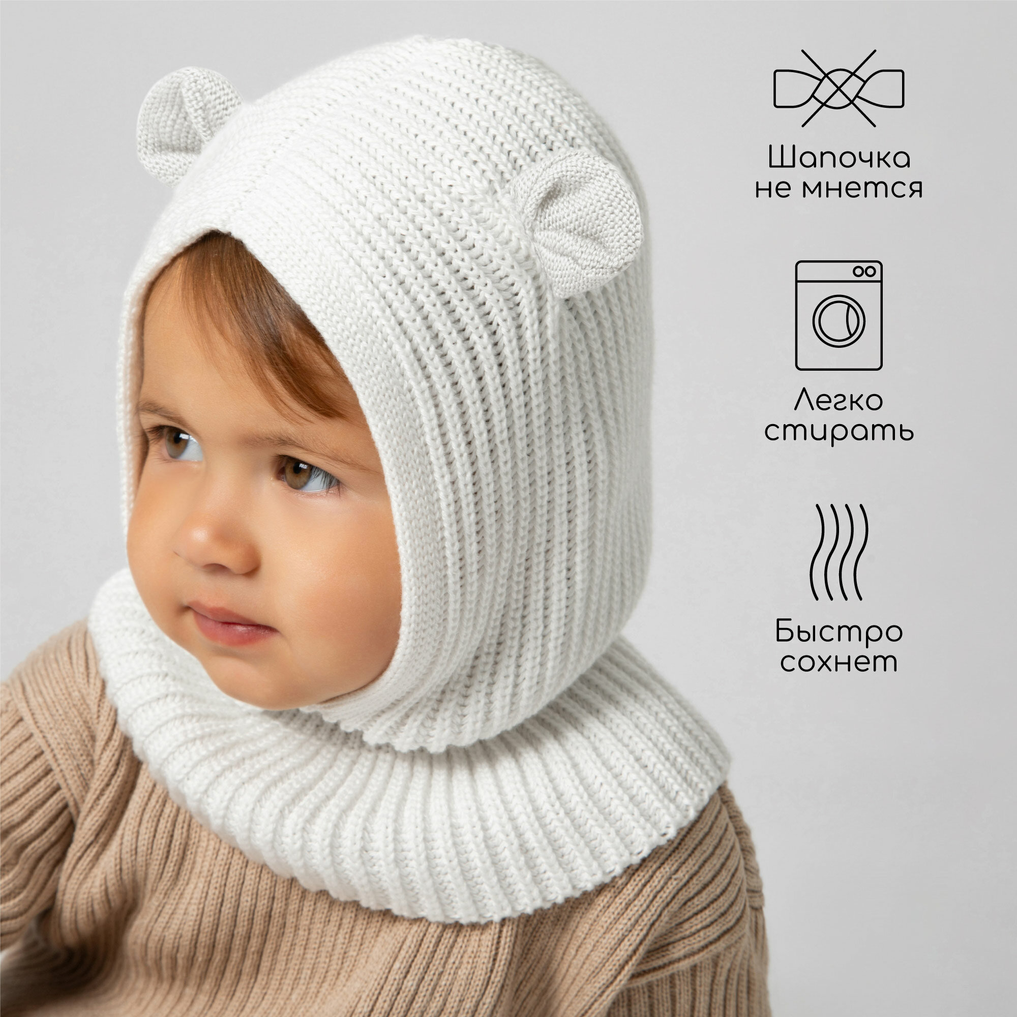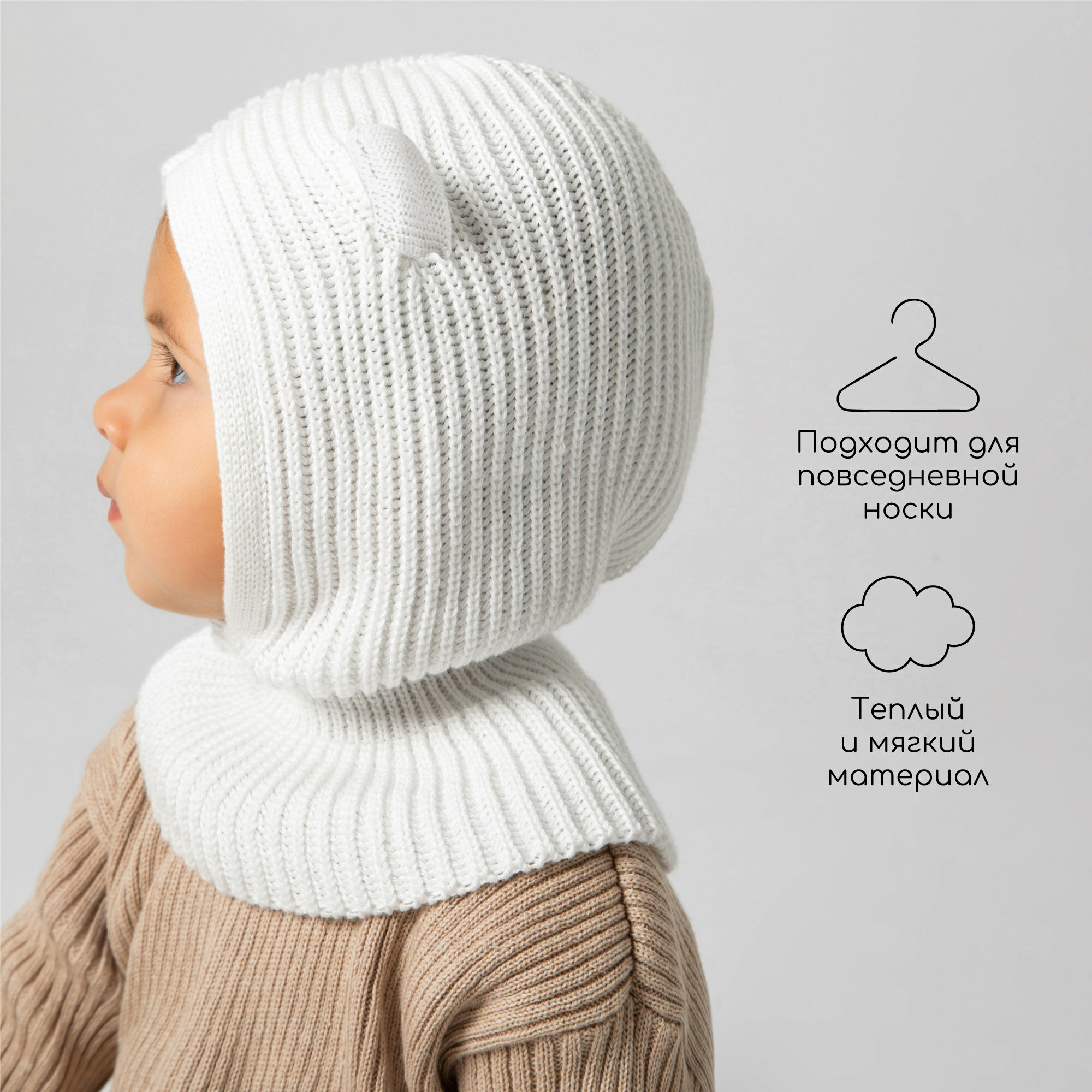Балаклава Amarobaby Pure Love Snug для детей, размер 46-48, молочный
