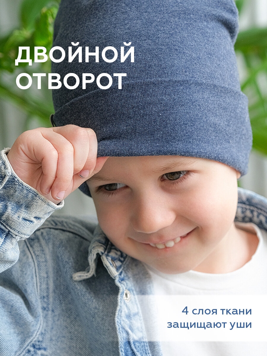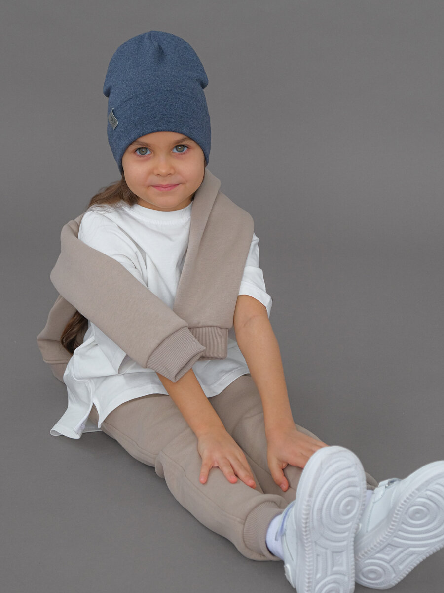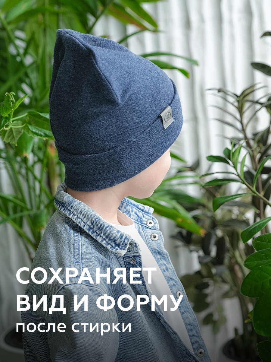 Шапка-бини JUMBI Шапка для девочек и мальчиков весна лето осень трикотажная двухслойная для детей, размер 53-56, джинc