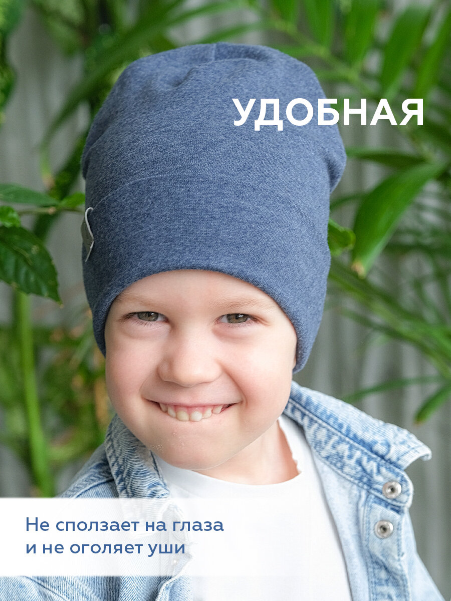 Шапка-бини JUMBI Шапка для девочек и мальчиков весна лето осень трикотажная двухслойная для детей, размер 49-52, синий меланж