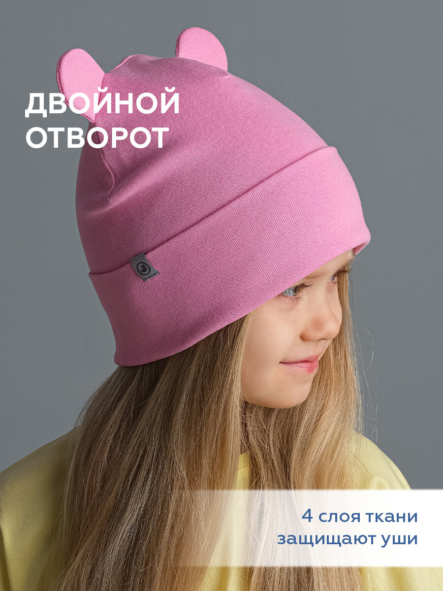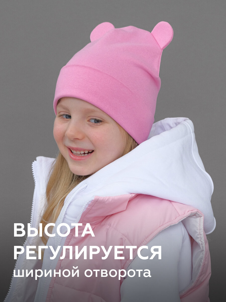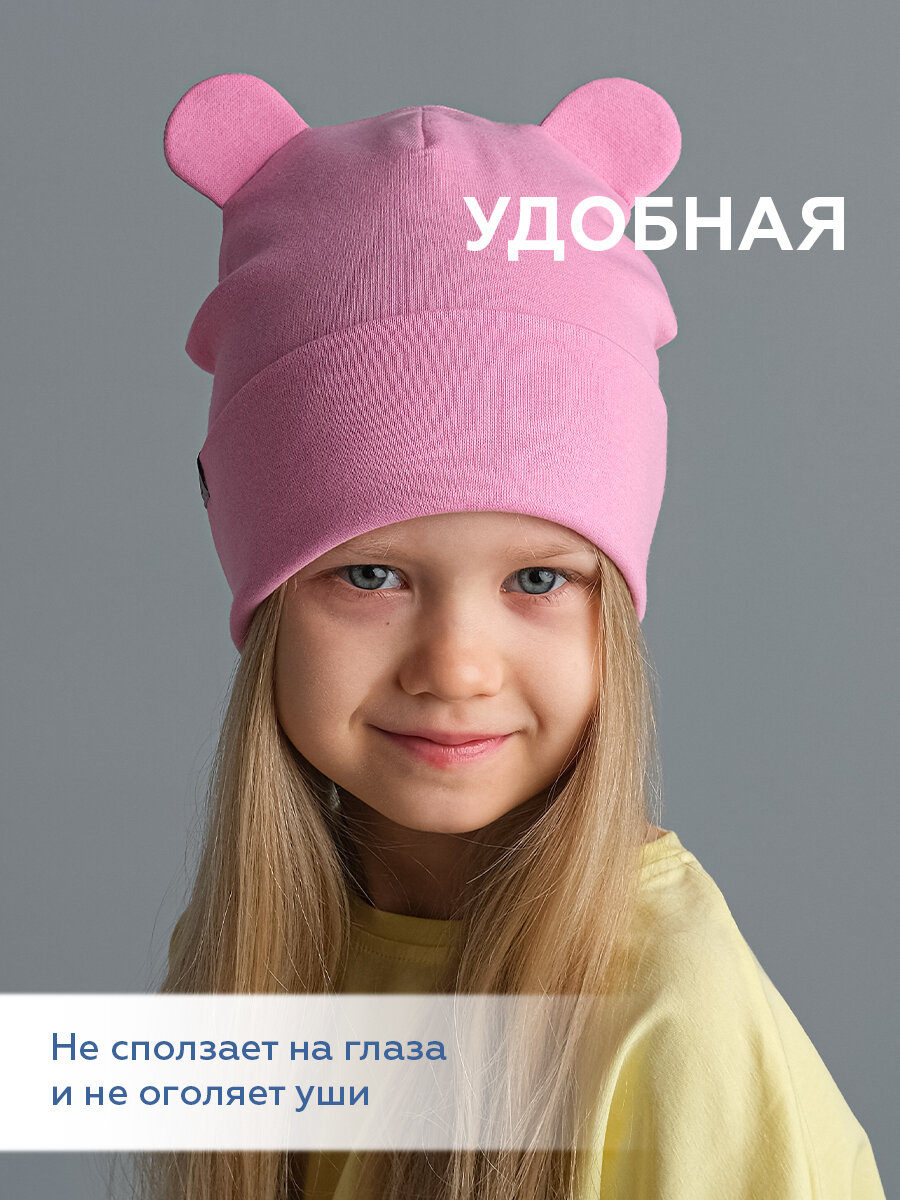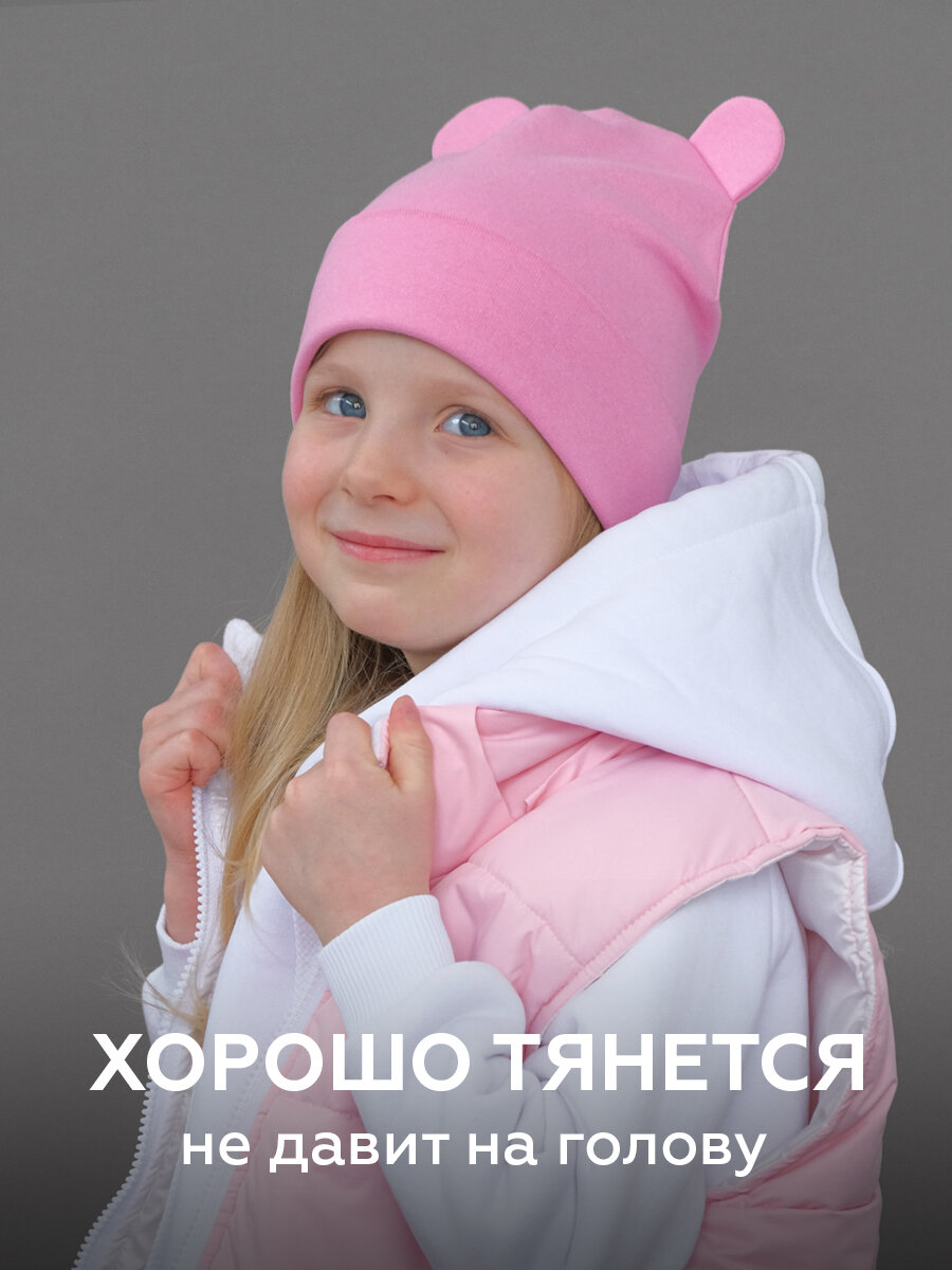 СохранитьШапка-бини JUMBI Шапка для девочек весна лето осень трикотажная двухслойная с ушками для девочек, размер 49-52, безе интересное: