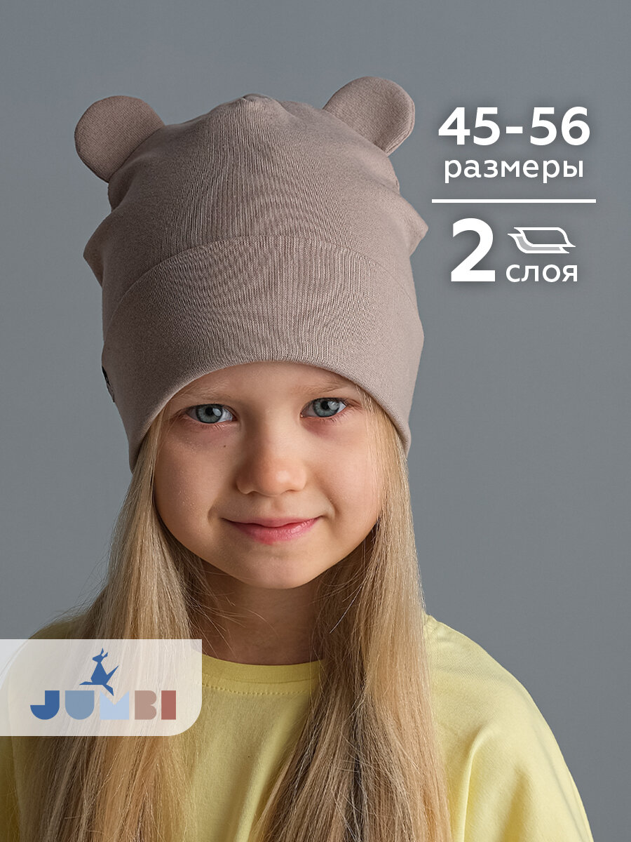 Купить Шапка-бини JUMBI Шапка детская весна лето осень трикотажная двухслойная с ушками для девочек, размер 45-48, какао