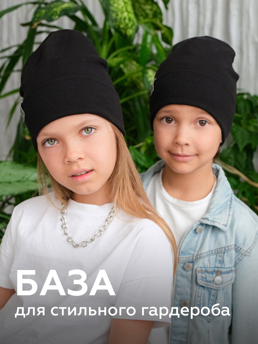 Шапка-бини JUMBI Шапка для девочек и мальчиков весна лето осень трикотажная двухслойная для детей, размер 53-56, антрацит