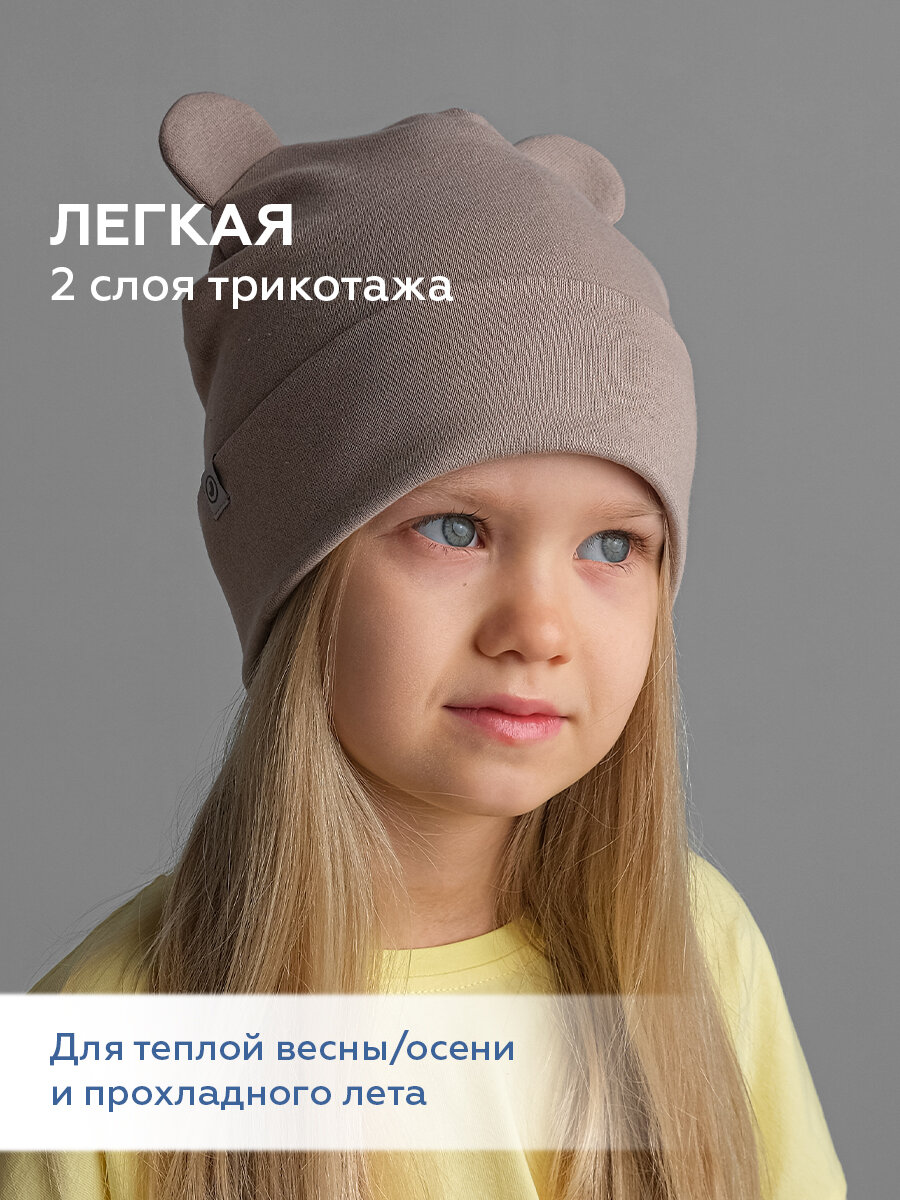 Шапка-бини JUMBI Шапка детская весна лето осень трикотажная двухслойная с ушками для девочек, размер 45-48, какао