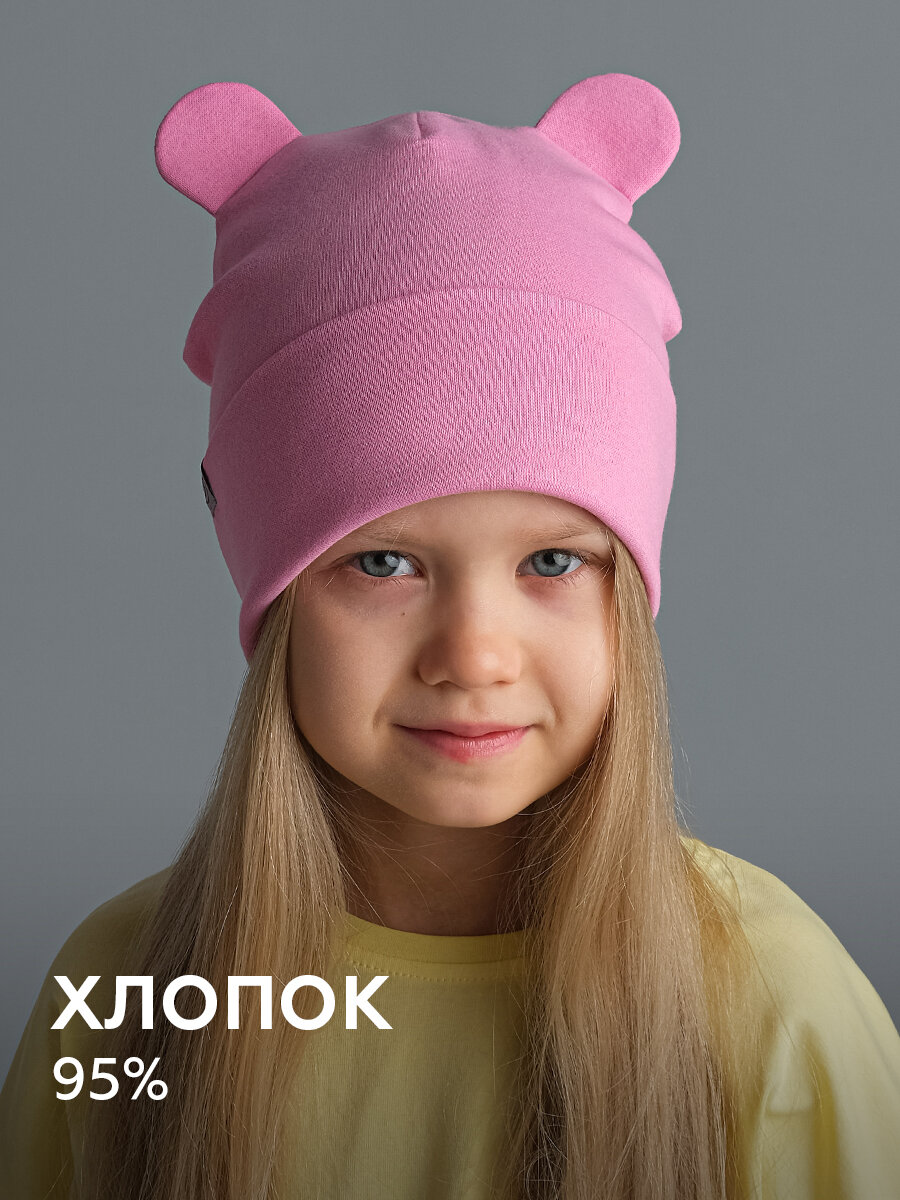 СохранитьШапка-бини JUMBI Шапка для девочек весна лето осень трикотажная двухслойная с ушками для девочек, размер 45-48, безе интересное: