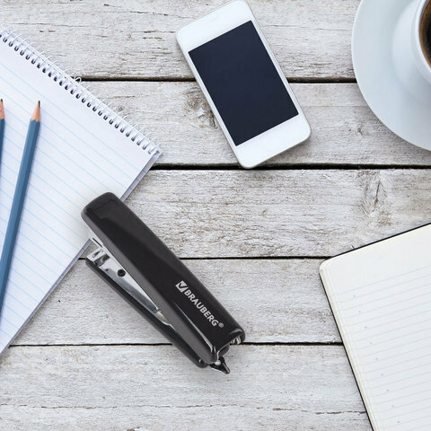 Степлер Brauberg "Nero", №10, до 12 листов, пластиковый корпус, металл.механизм, черный (222545)
