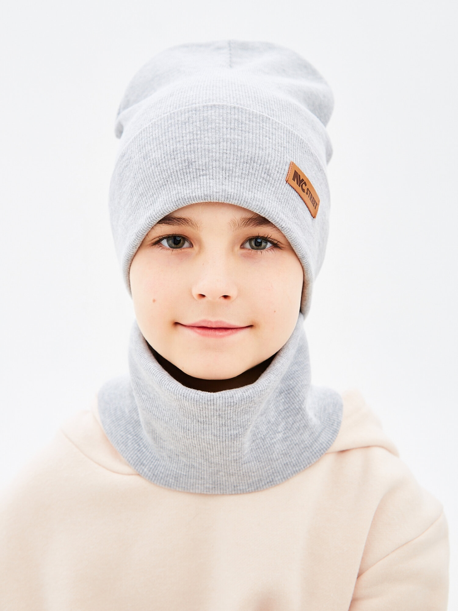 Купить Шапка-бини NYCkids для мальчиков, размер 52-56, светло-серый (211)