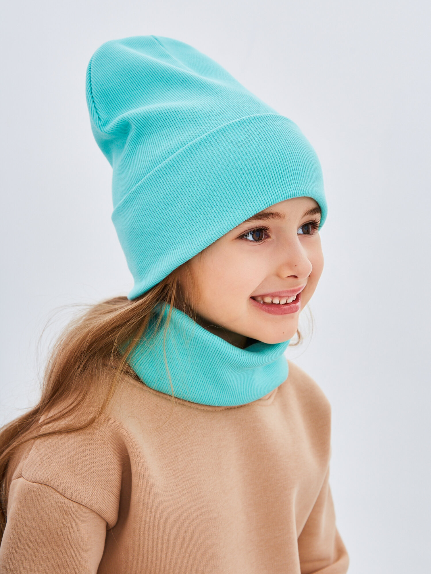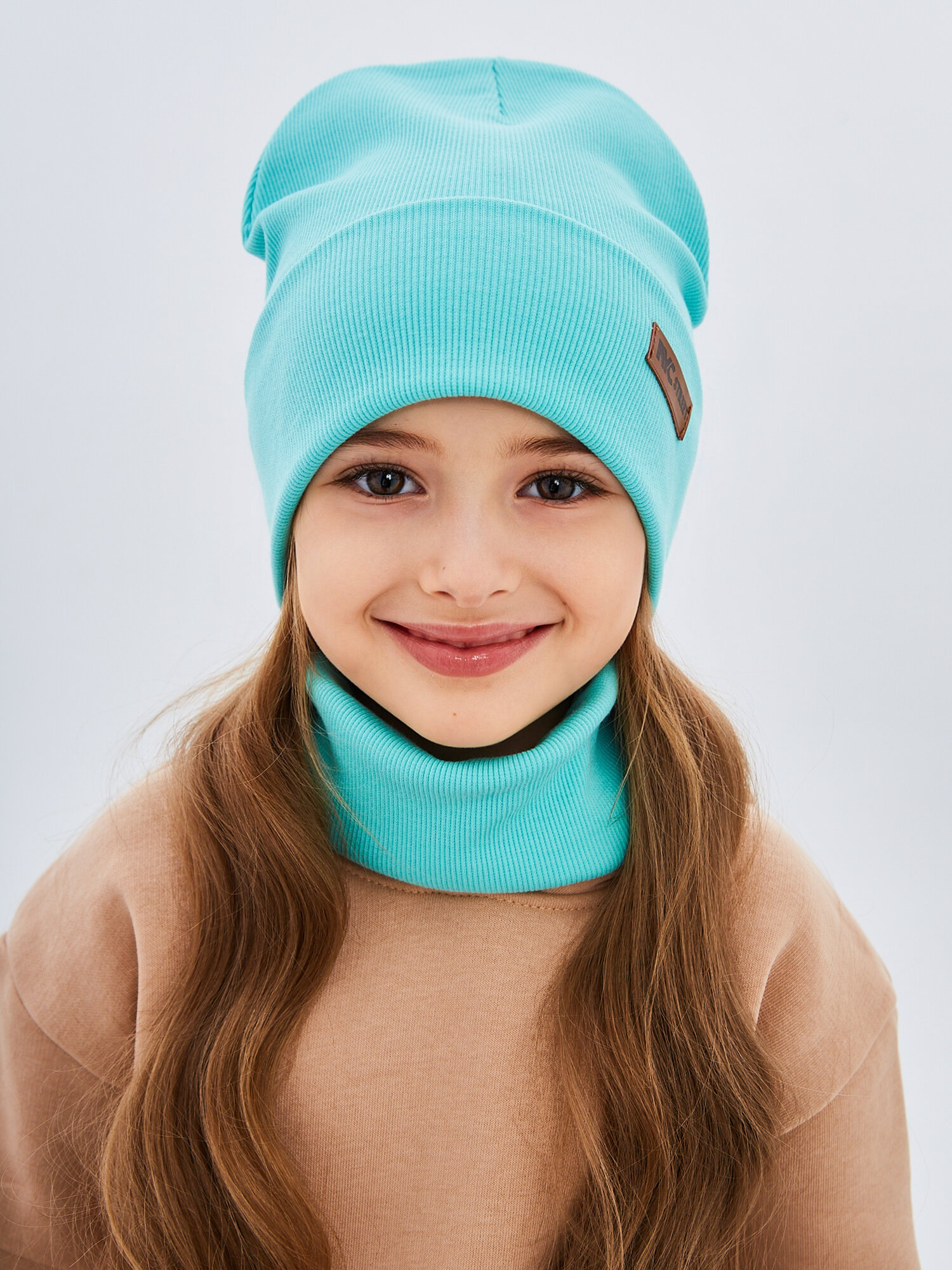 СохранитьШапка-бини NYCkids для девочек, размер 52-56, бирюзовый интересное: