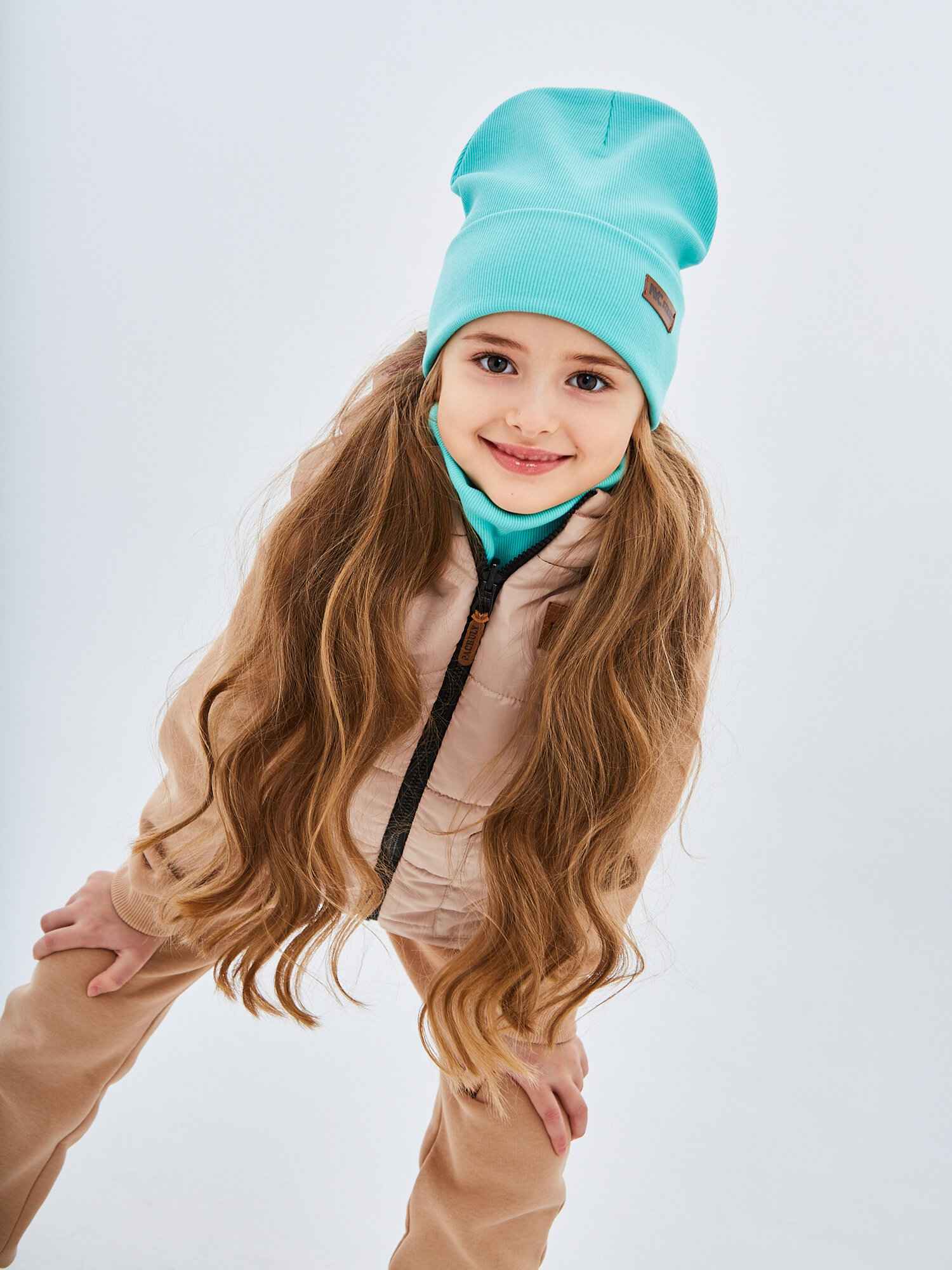 Купить Шапка-бини NYCkids для девочек, размер 52-56, бирюзовый