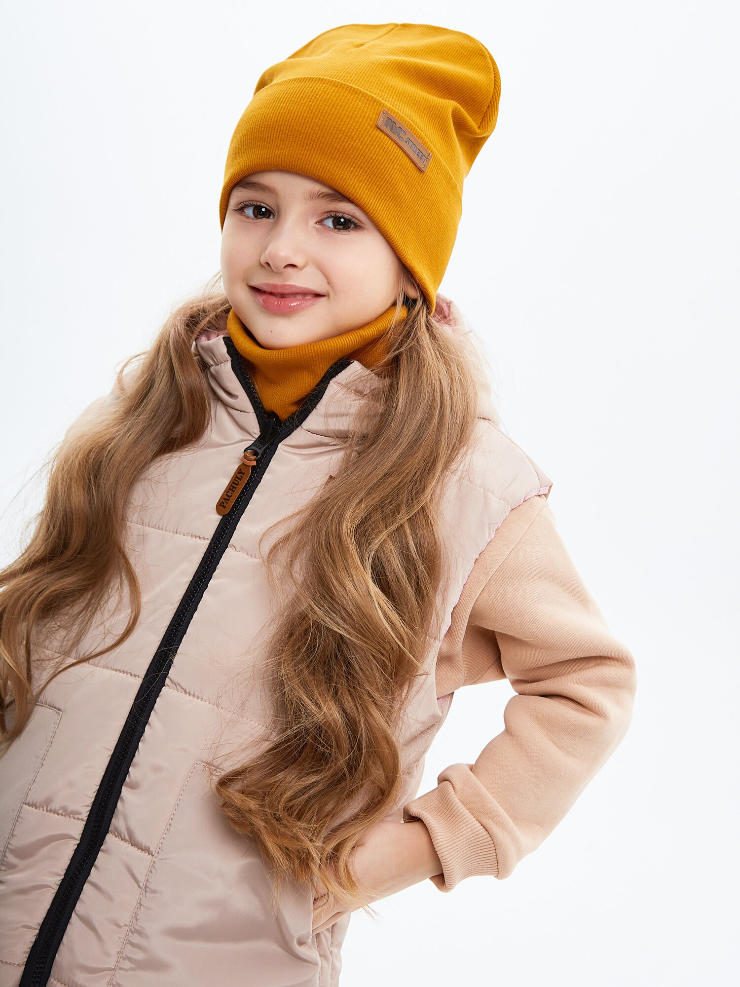 Шапка-бини NYCkids для девочек, размер 52-56, горчичный/ желтый