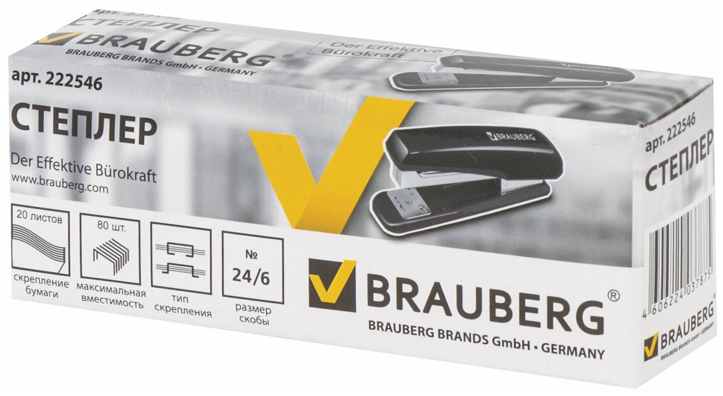 Степлер Brauberg Classic, №24/6, до 20 листов, черный (222546)