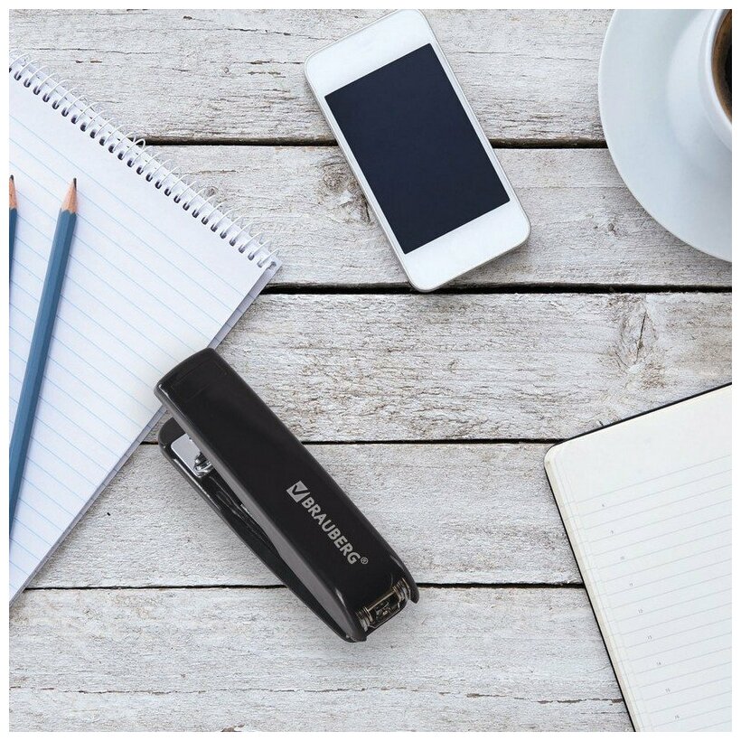 Степлер Brauberg "Nero", №24/6, до 20 листов, пластиковый корпус, металл.механизм, черный (222546)