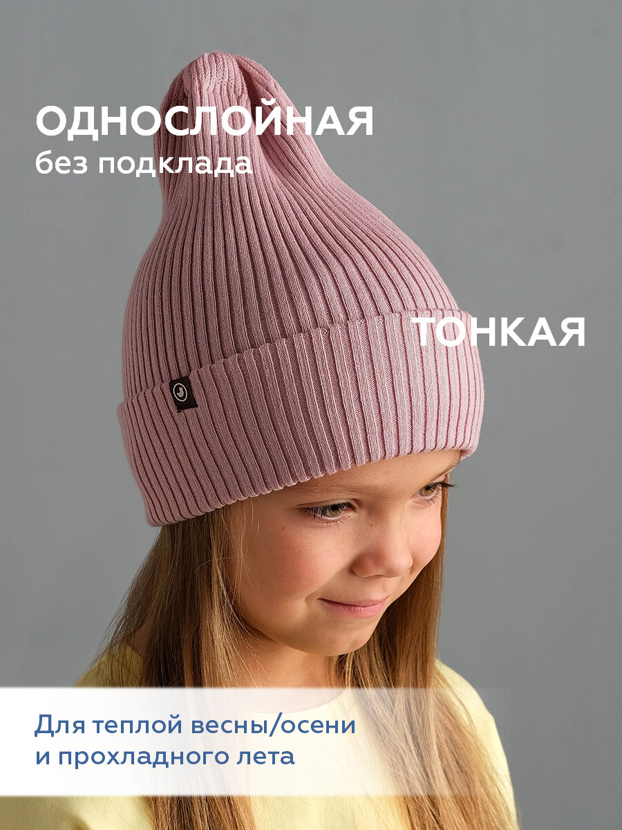 Шапка-бини JUMBI Шапка для девочек весна лето осень однослойная с отворотом для девочек, размер 40-46, пудра