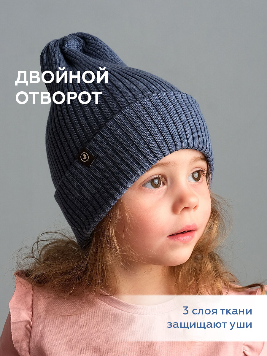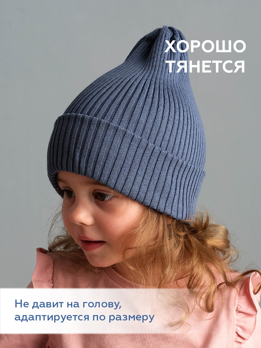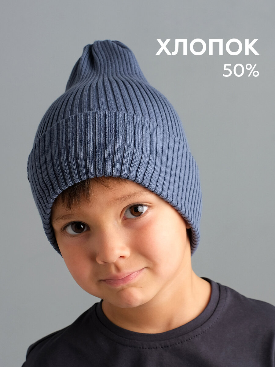 Шапка-бини JUMBI Шапка детская весна лето осень однослойная с отворотом для детей, размер 47-52, синий пепел