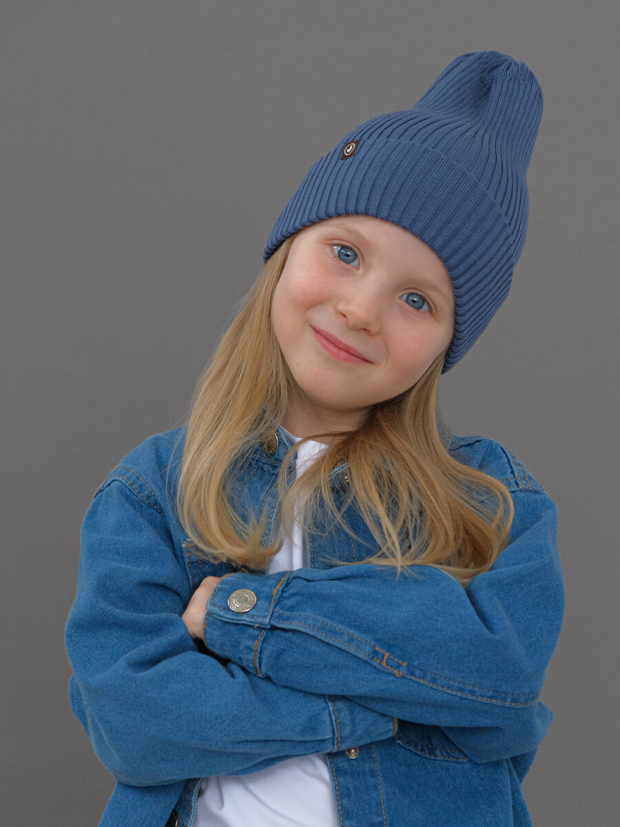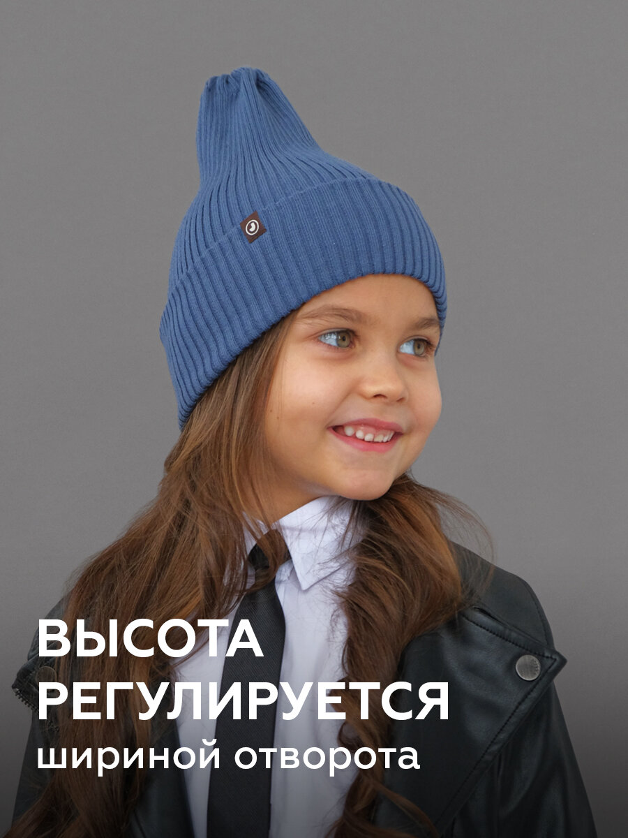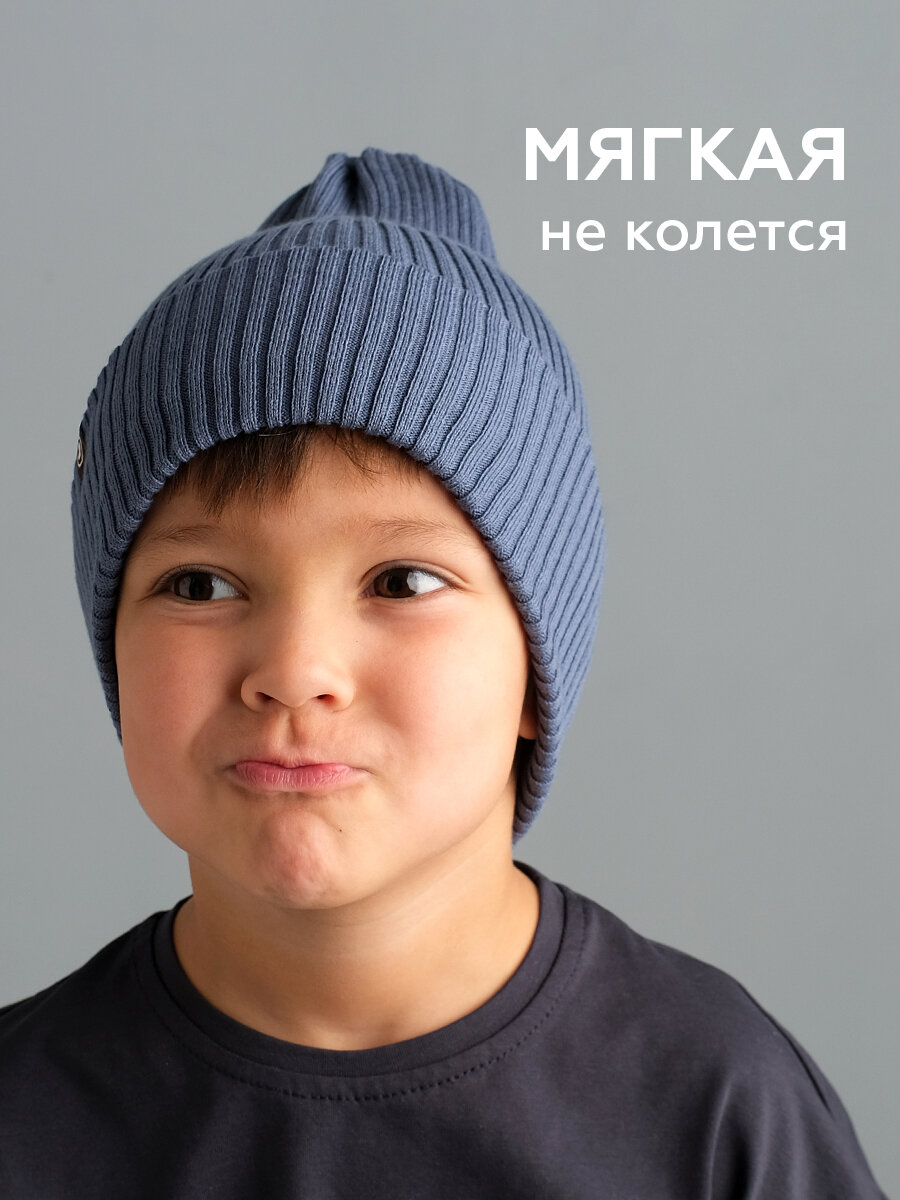 Шапка-бини JUMBI Шапка детская весна лето осень однослойная с отворотом для детей, размер 40-46, синий пепел