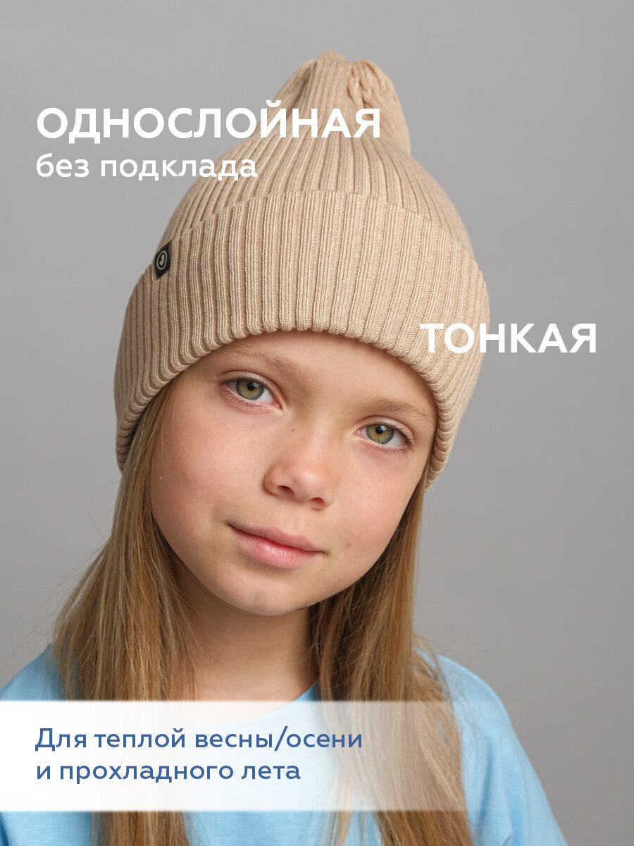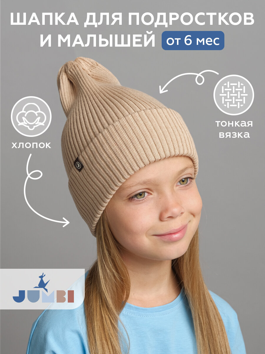 Купить Шапка-бини JUMBI Шапка детская весна лето осень однослойная с отворотом для детей, размер 40-46, сандал