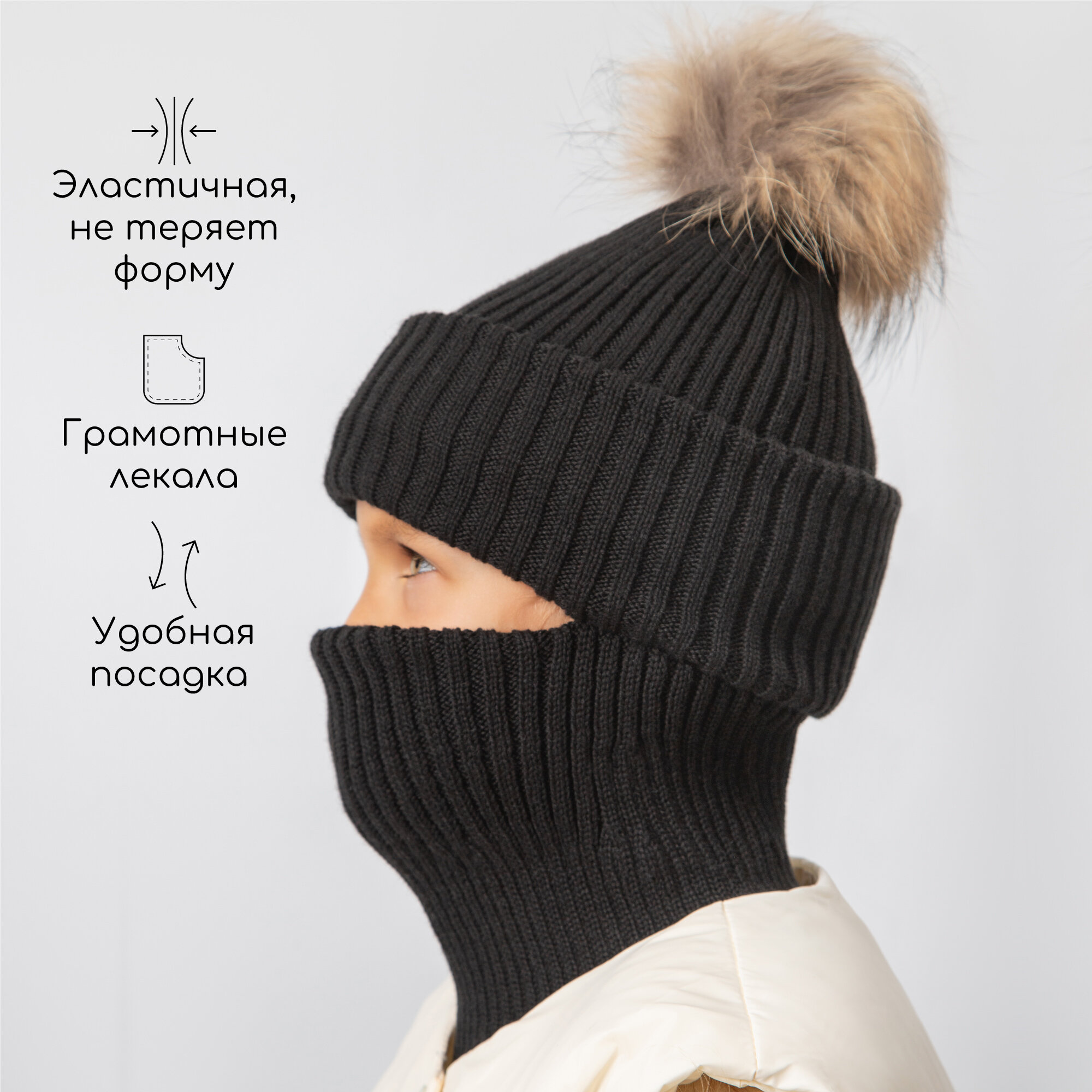 Балаклава Amarobaby Pure Love Pompon для детей, размер 52-54, черный