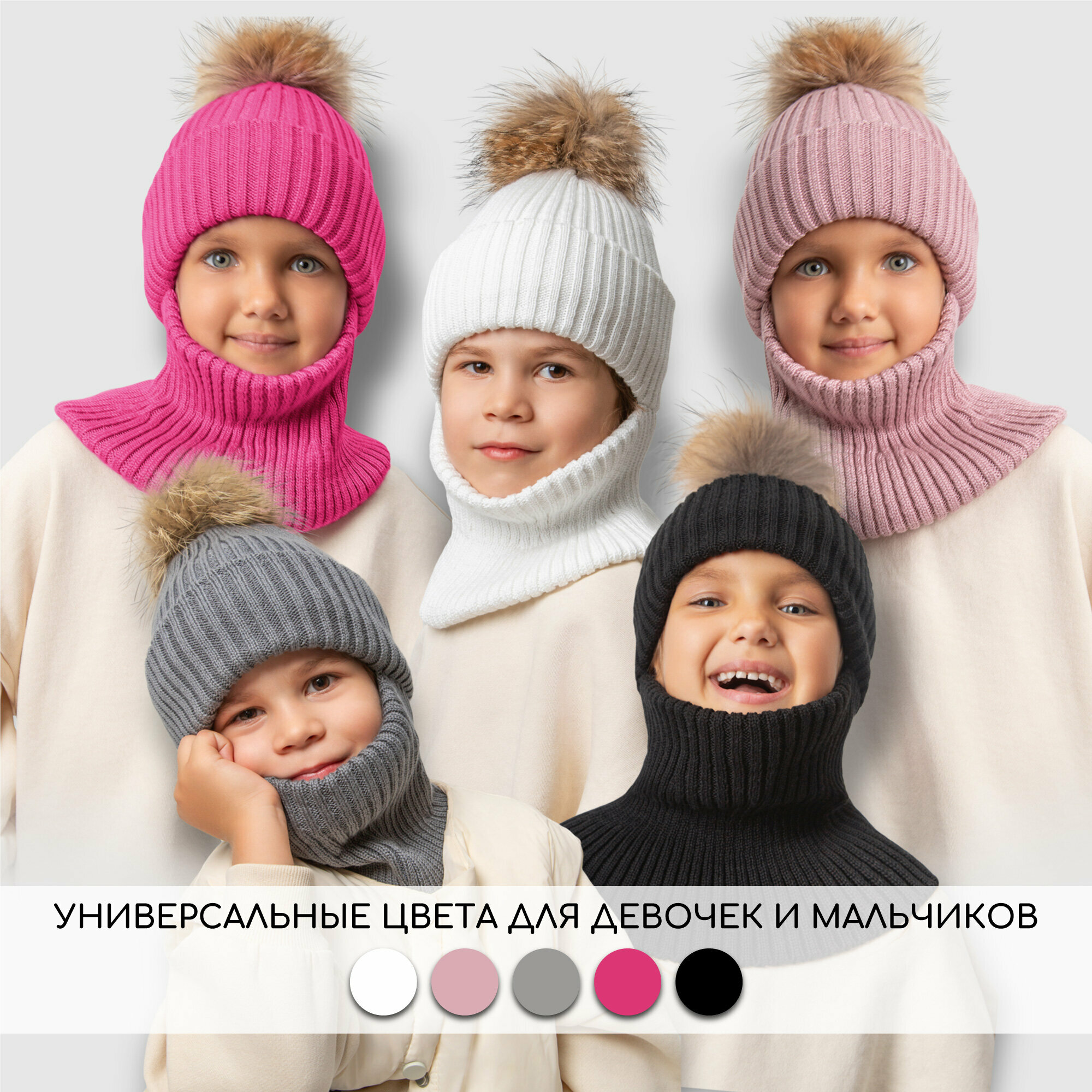 Балаклава Amarobaby Pure Love Pompon для детей, размер 52-54, молочный