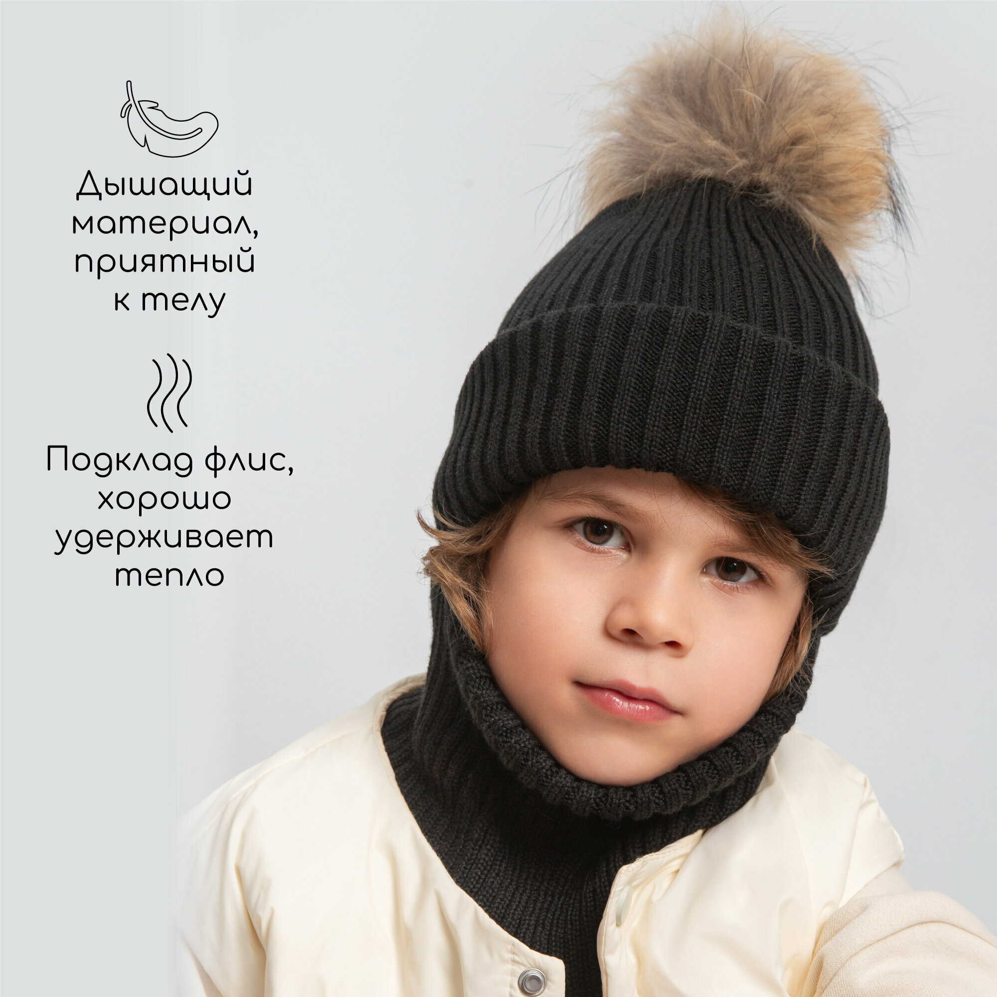 Балаклава Amarobaby Pure Love Pompon для детей, размер 50-52, черный