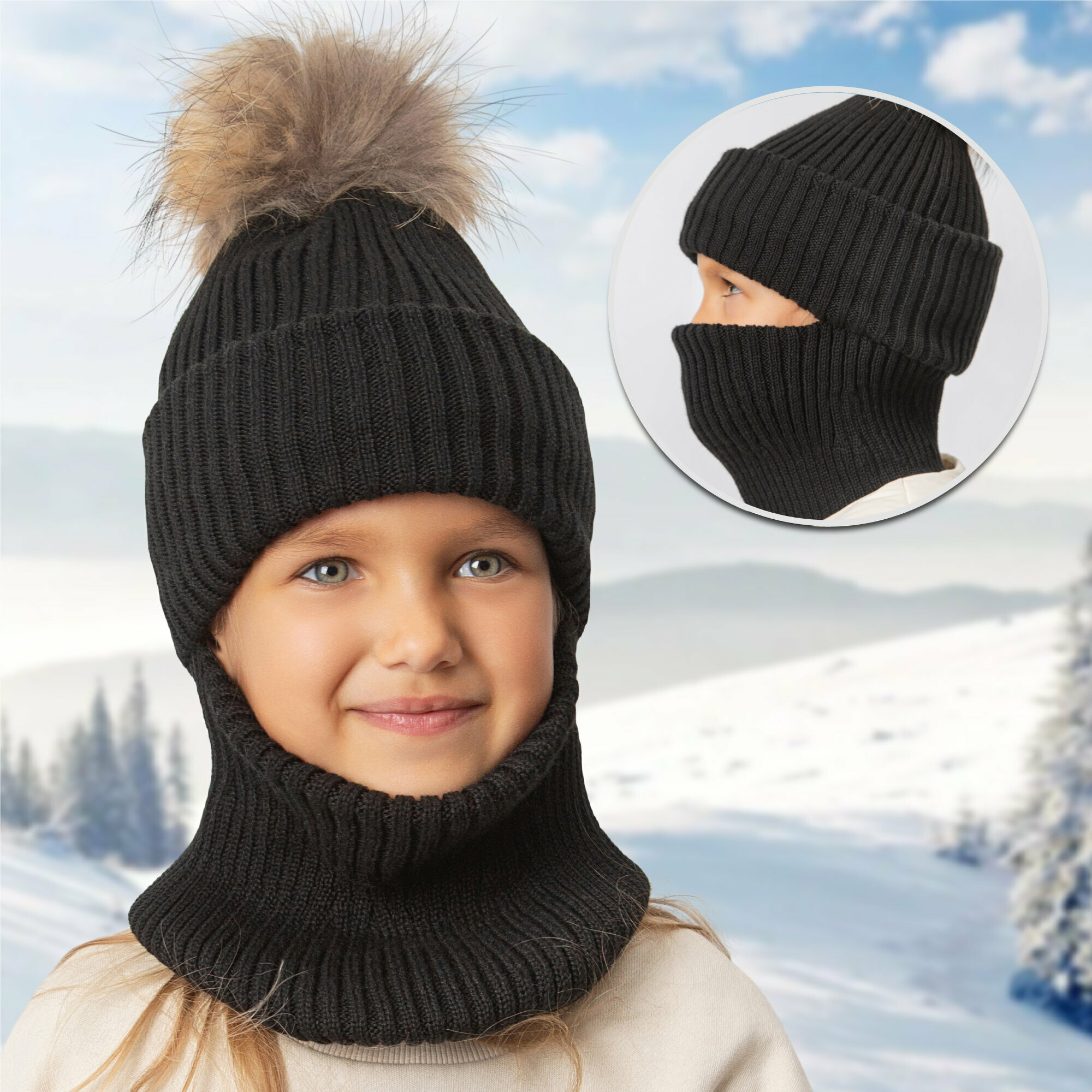 Купить Балаклава Amarobaby Pure Love Pompon для детей, размер 52-54, черный