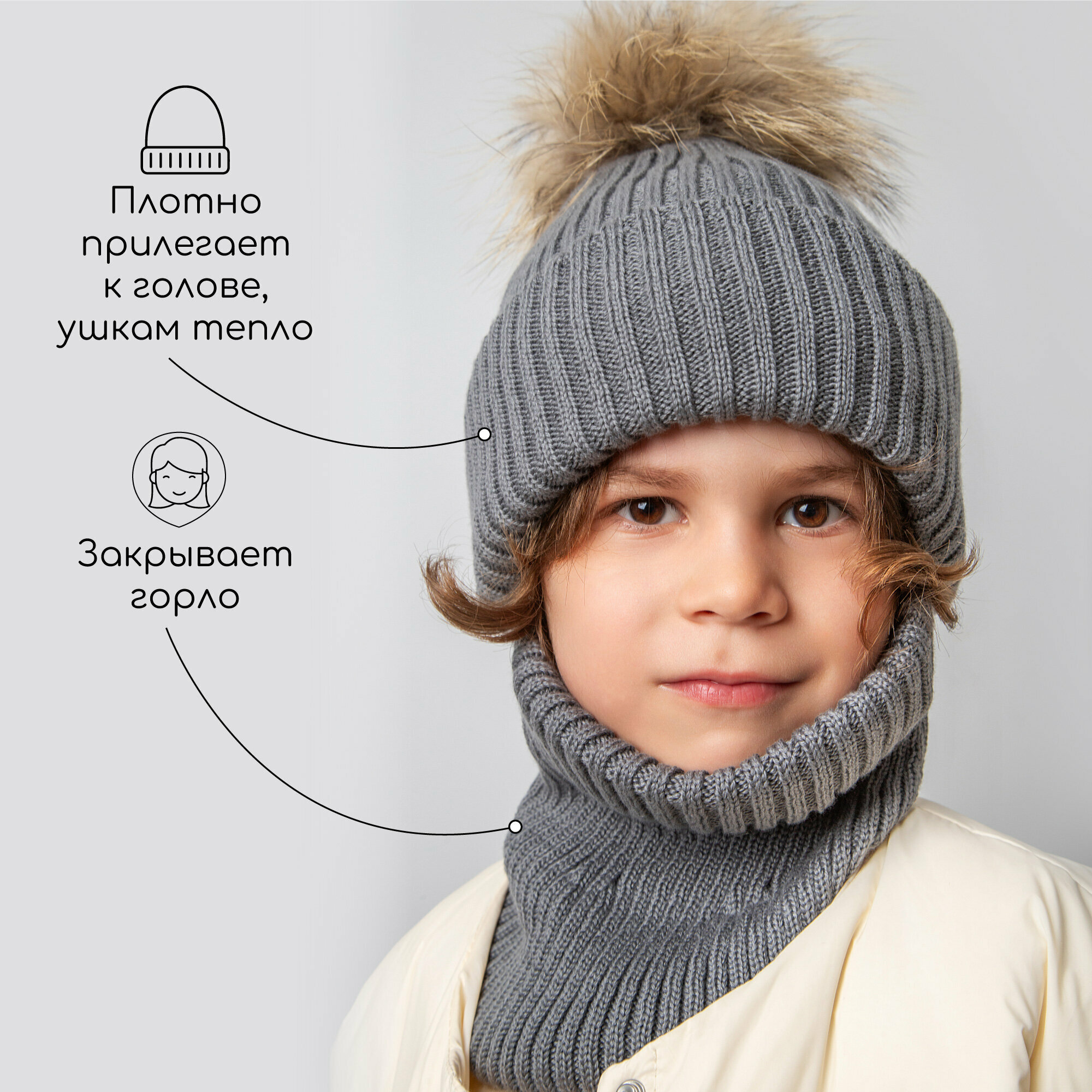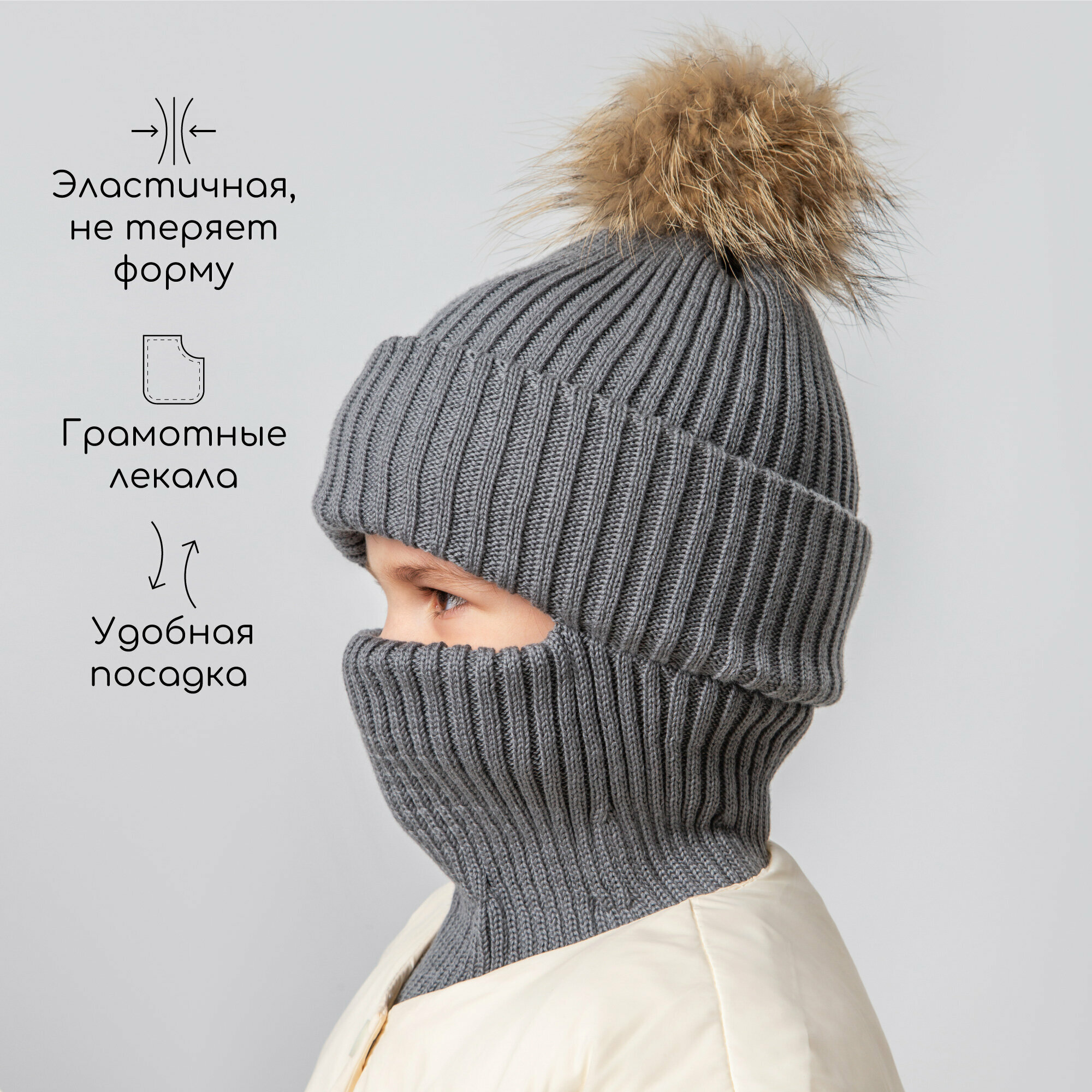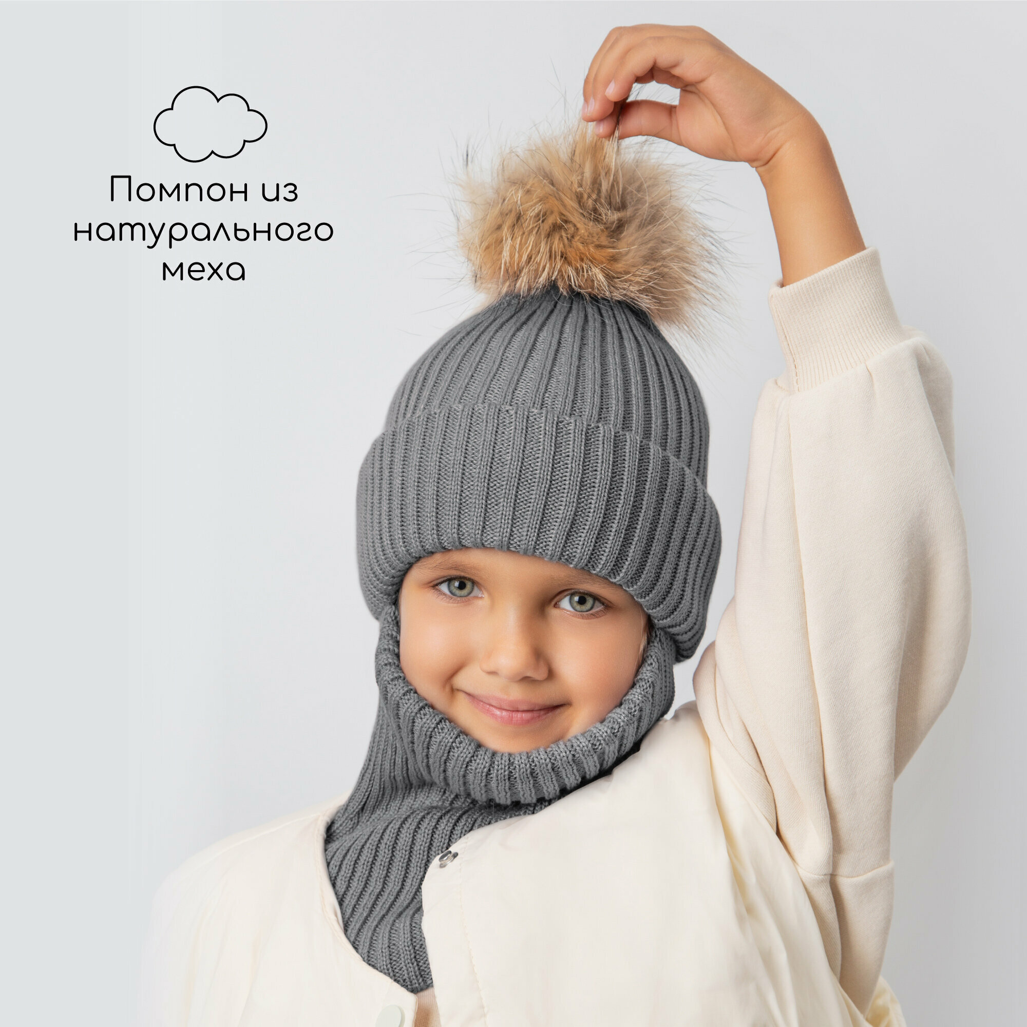 Балаклава Amarobaby Pure Love Pompon для детей, размер 50-52, серый