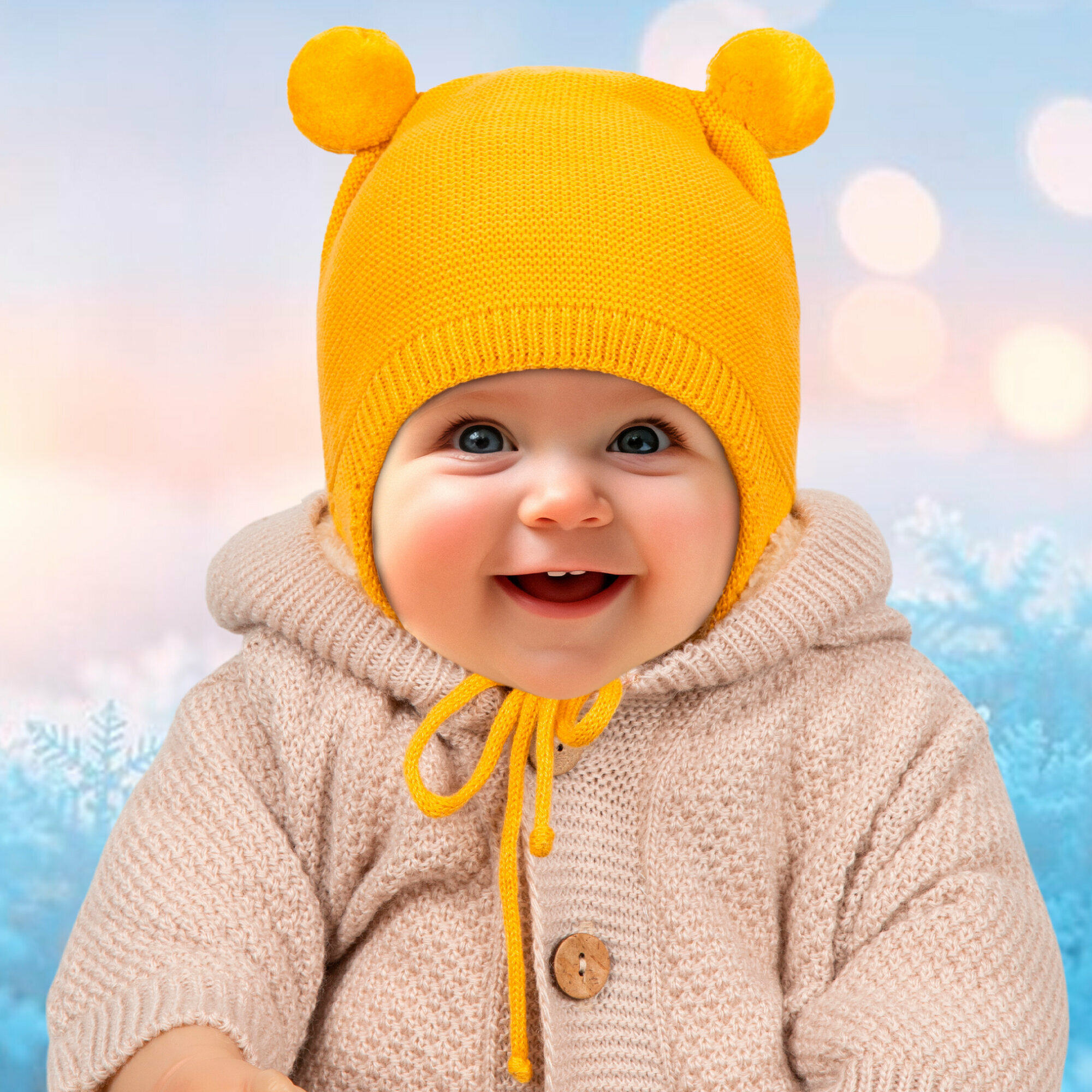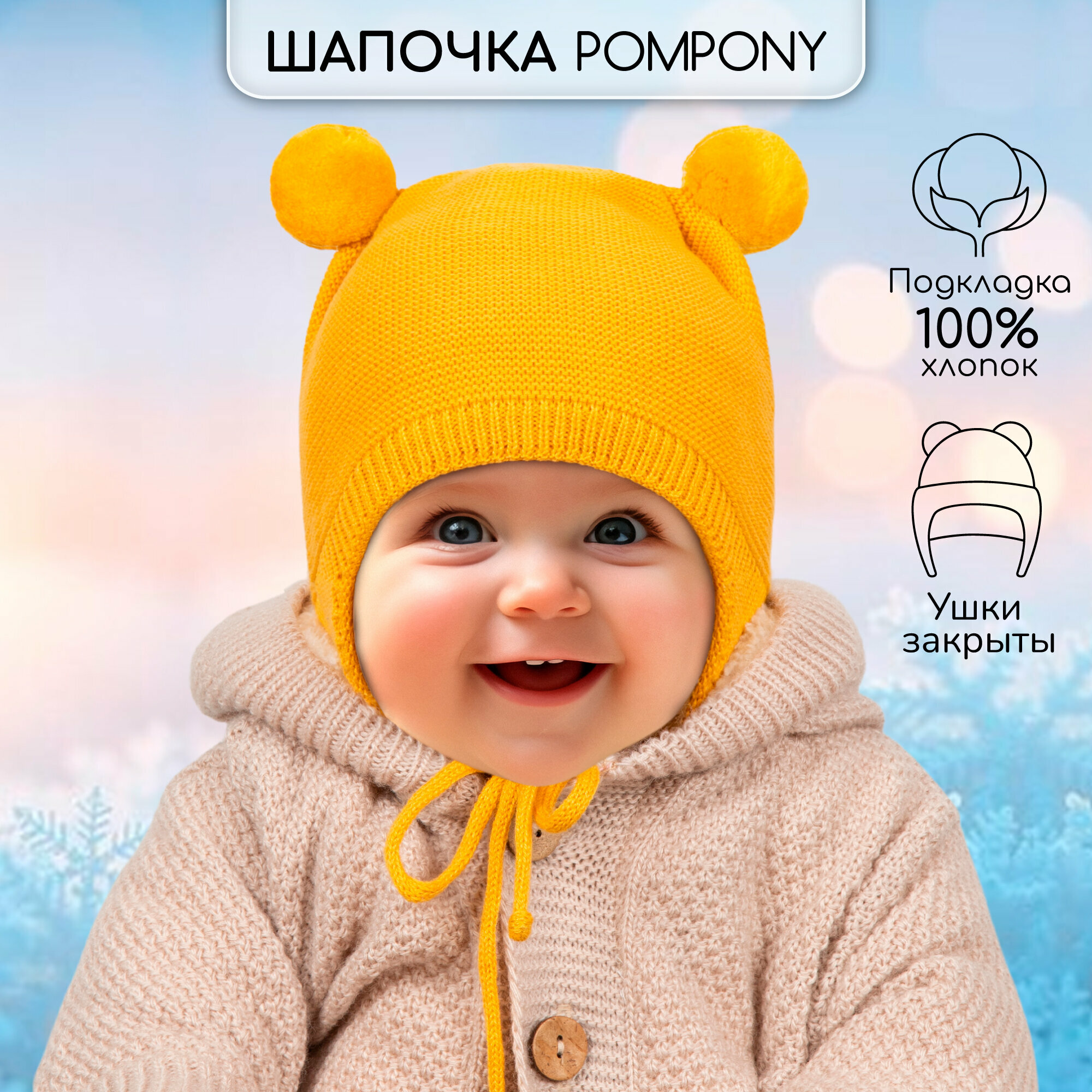 Купить Шапка-ушанка Amarobaby Pure Love POMPONY для детей, размер 42, желтый