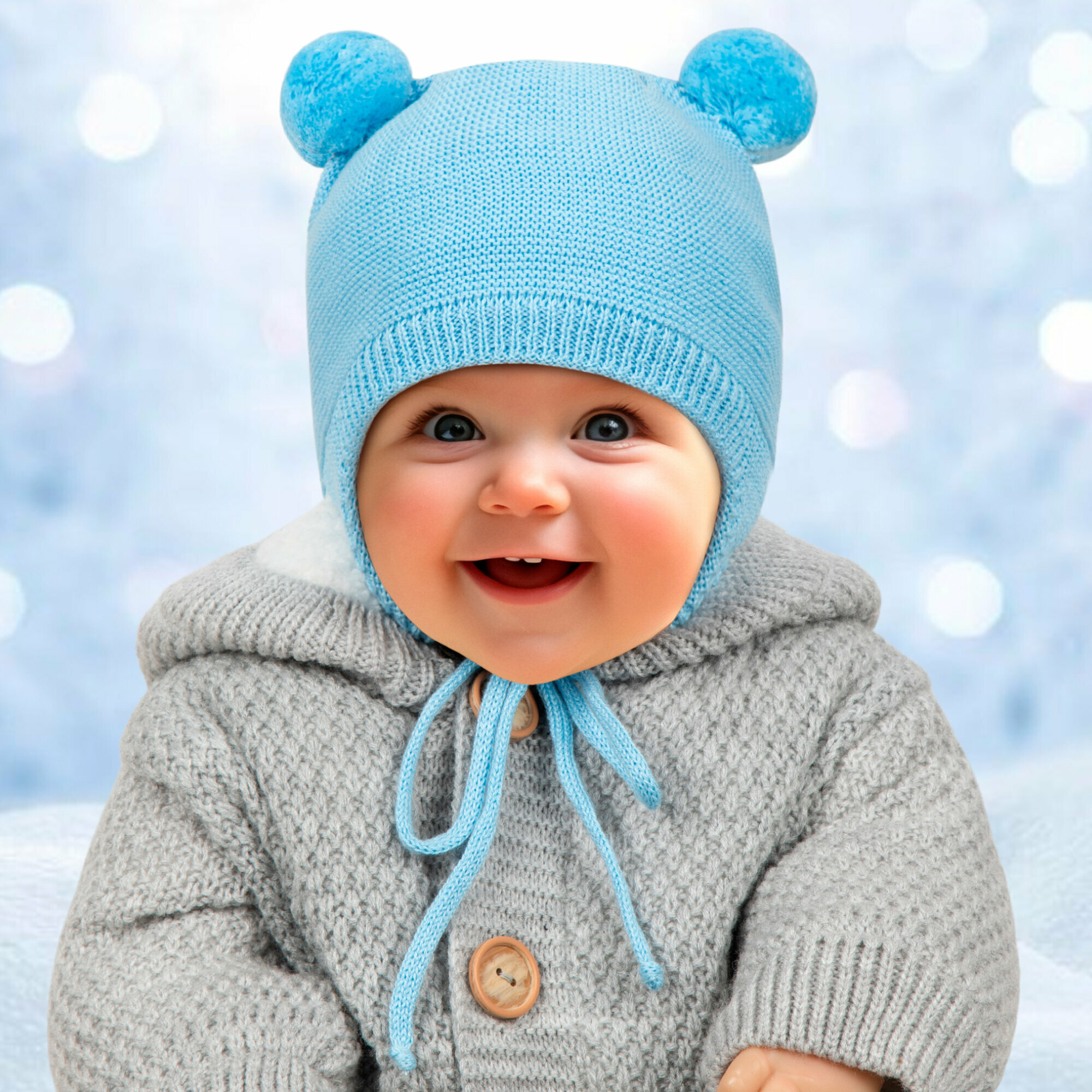 Купить Шапка-ушанка Amarobaby Pure Love POMPONY для детей, размер 42, blue