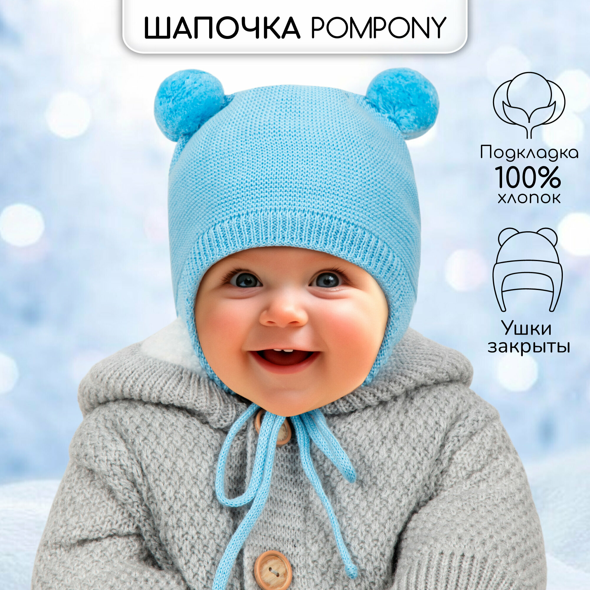 Шапка-ушанка Amarobaby Pure Love POMPONY для детей, размер 42, blue интересное: