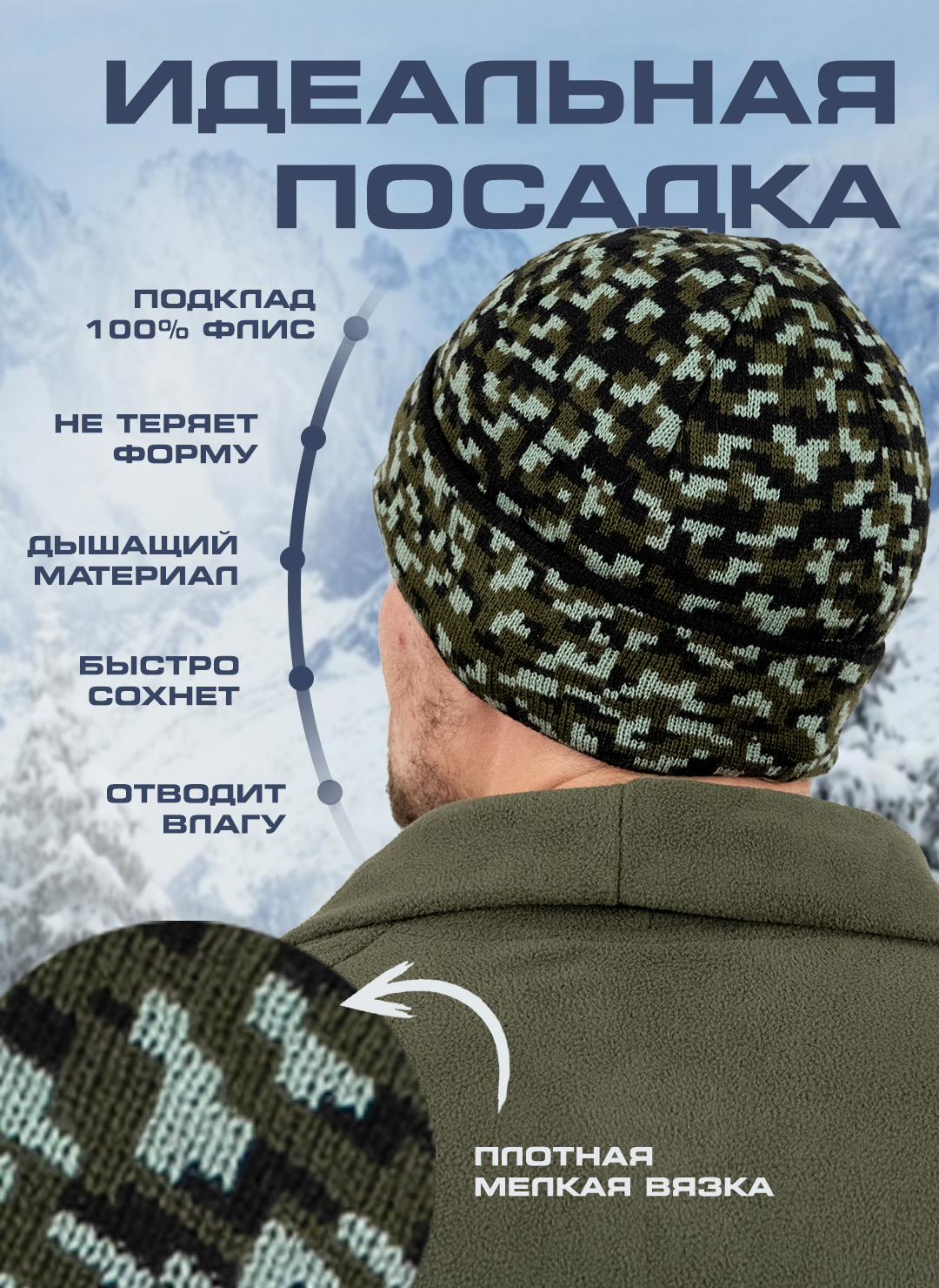 Шапка ПОЛИГОН для мужчин, размер one size