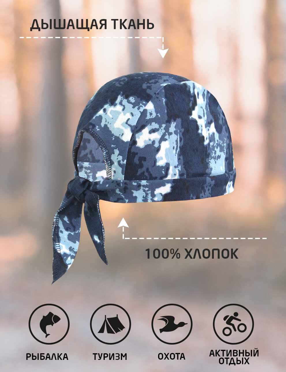 СохранитьБандана Компания БВР камуфлированная трикотажная для взрослых и детей, размер 54-57, синий интересное: