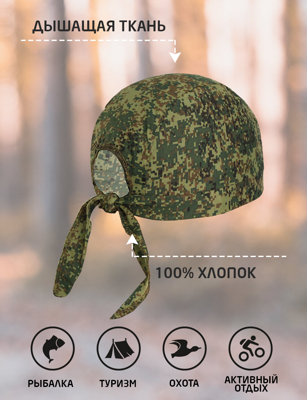 Бандана Компания БВР камуфлированная трикотажная для взрослых и детей, размер 54-57, лес